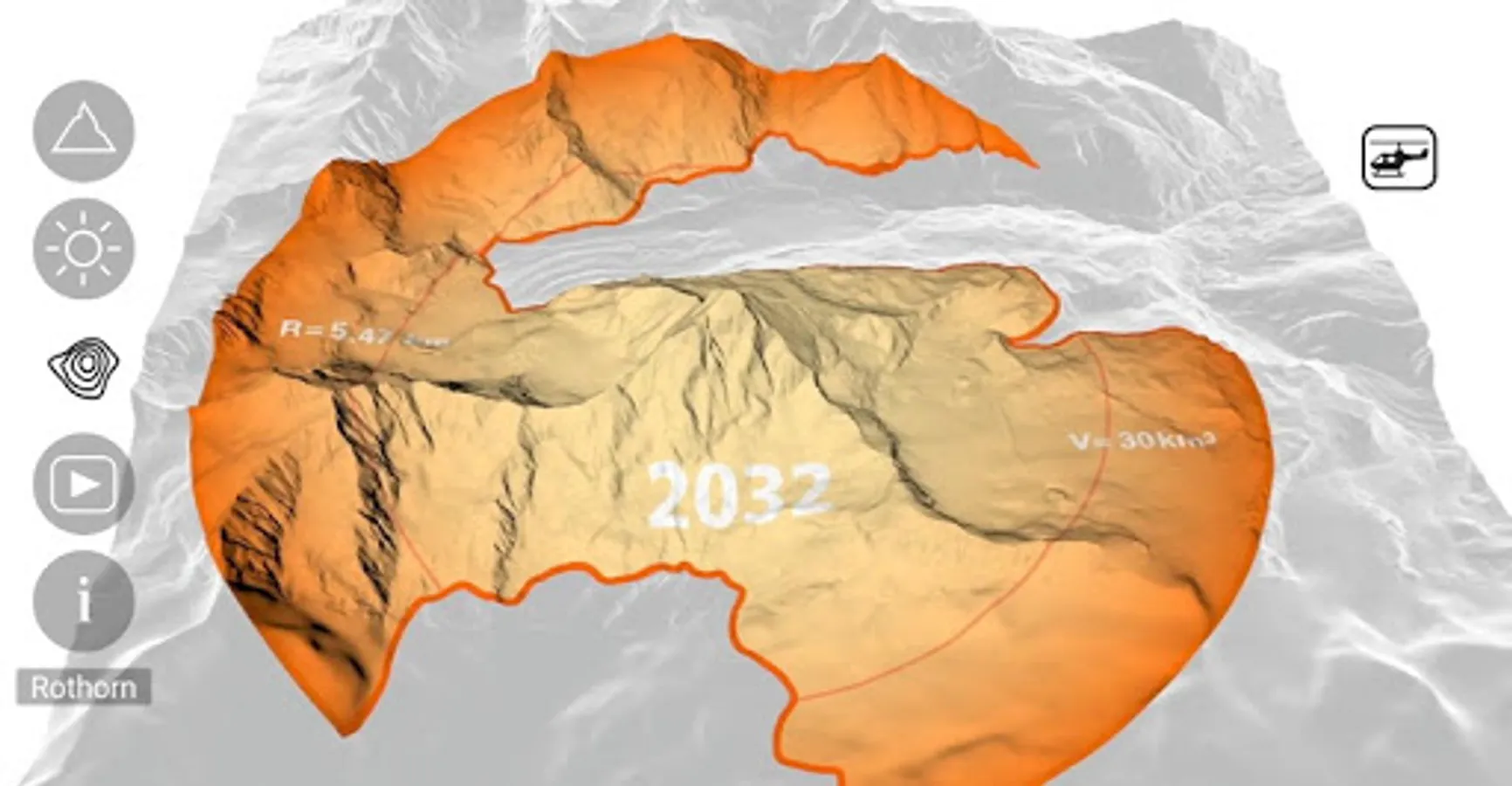 The app works at seven look-out points at the Matterhorn and shows the extent of the volume of plastic at the Matterhorn. The red line marks the limit of this proliferation in 2019, while the orange line indicates the level forecast for 2035. The aim is to depict the inconceivable volume of plastic through the application of augmented reality within a real-world landscape, thereby opening up a new level of perception.