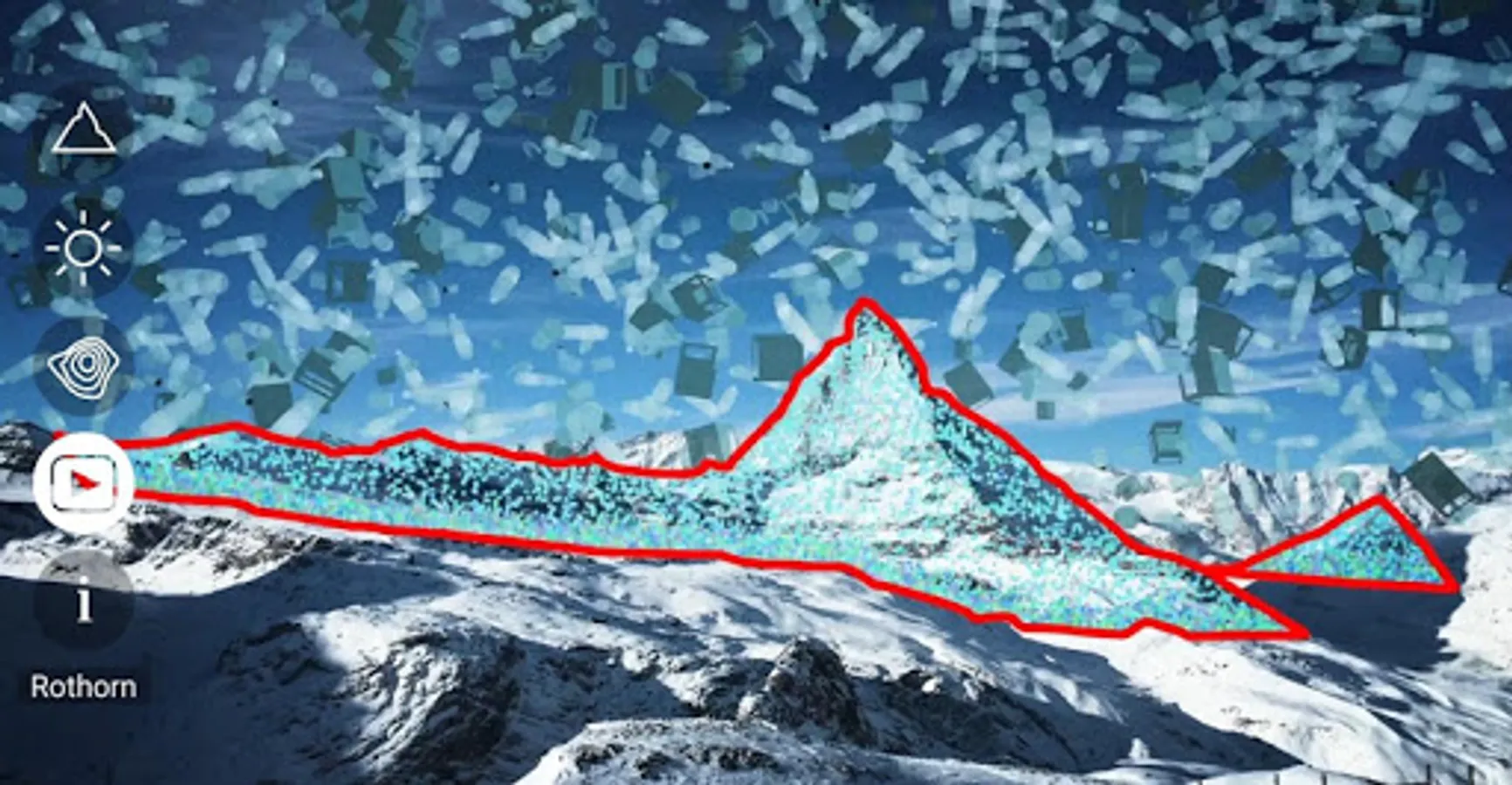 The “Earth Plastic View“ Art app developed for the project takes the experience of art into a new dimension. The real-world natural horizon and the “digital horizon“ blend to form a controversial new entity. The various functions of the “Earth Plastic View“ Art app render the magnitude of the volume of plastic at the Matterhorn tangible to the user.