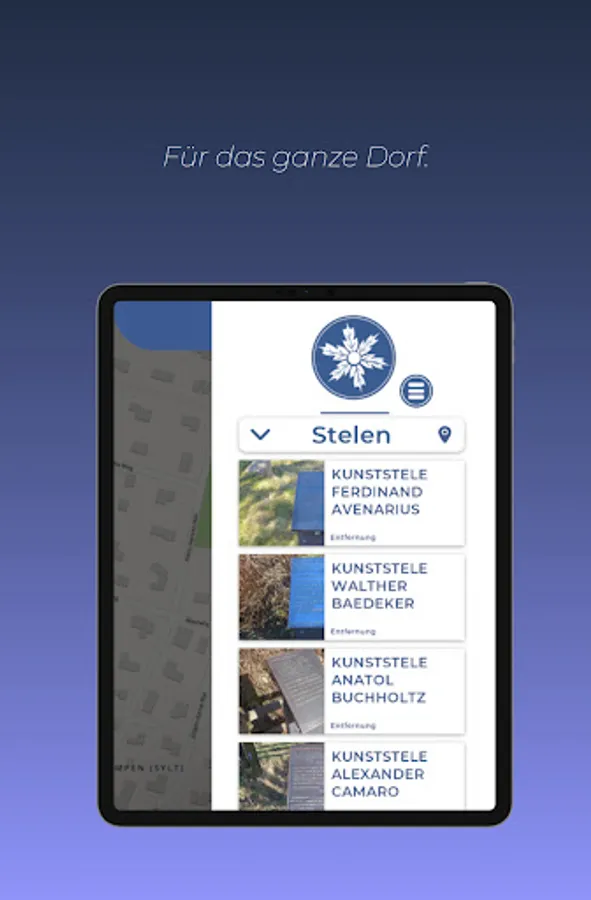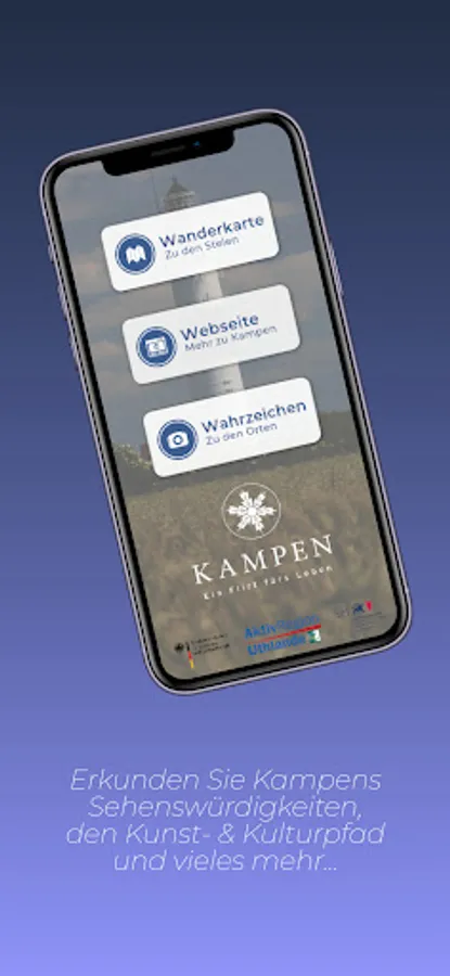 On the art and culture trail in Kampen there are 40 steles with information on important personalities who lived and worked in Kampen. As soon as the users of the app approach one of these steles, they receive a push message. Location is via GPS. You can then display multimedia information about the steles and other sights.
