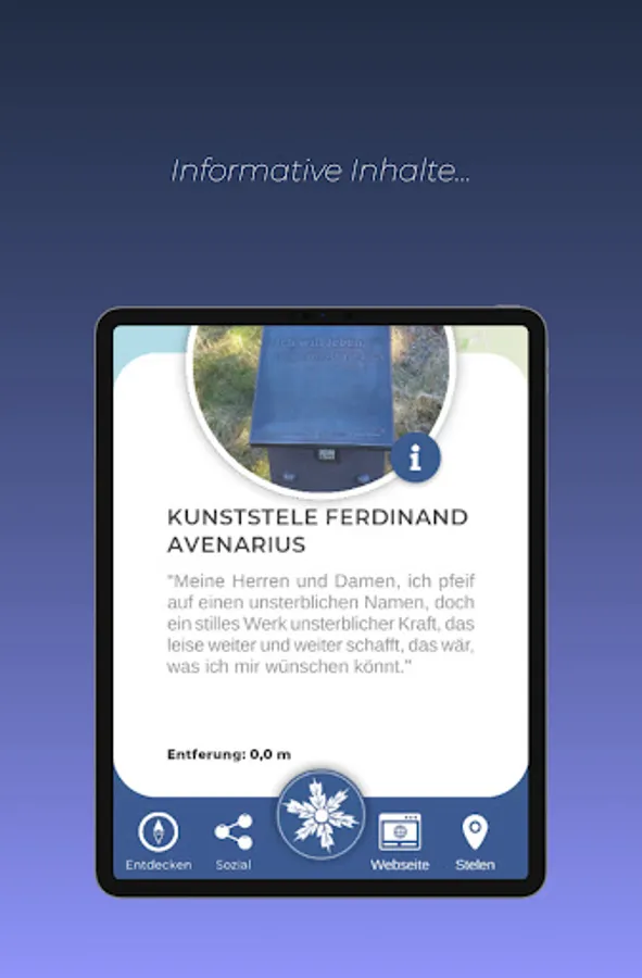 The app was developed to create an AR experience that conveys the cultural and scenic attractions and special features of the location as immersively as possible and makes a lot of interesting information accessible in an entertaining way.