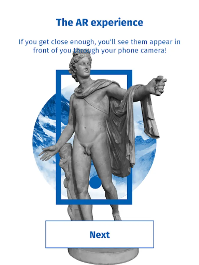Open the app, in the locations mentioned, and the Gods of Olympus will appear in front of you through the camera of your mobile phone!