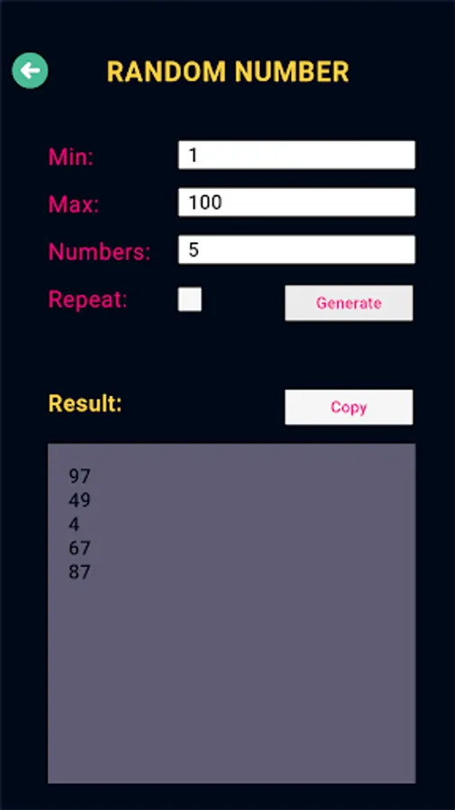 - All Results that are generated Are Totally Random Each Time You Click (Generate Random).