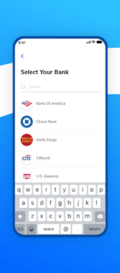 Users create an account by entering the app from the Apple or Google Play Store. Once prompted, the user will type in basic identification credentials, bank name from a scroll through feature, routing number, and personal debit/checking account number.