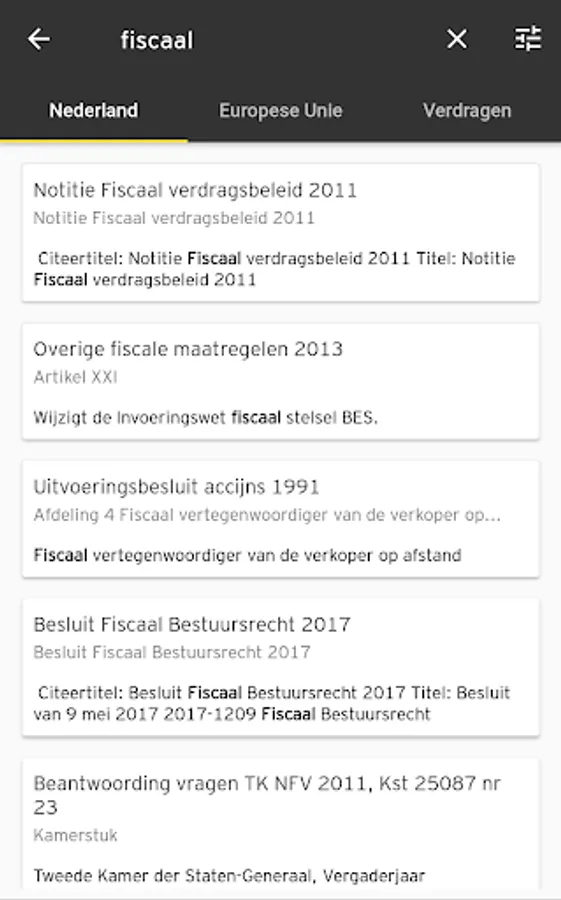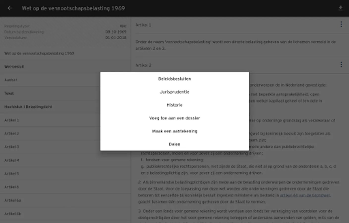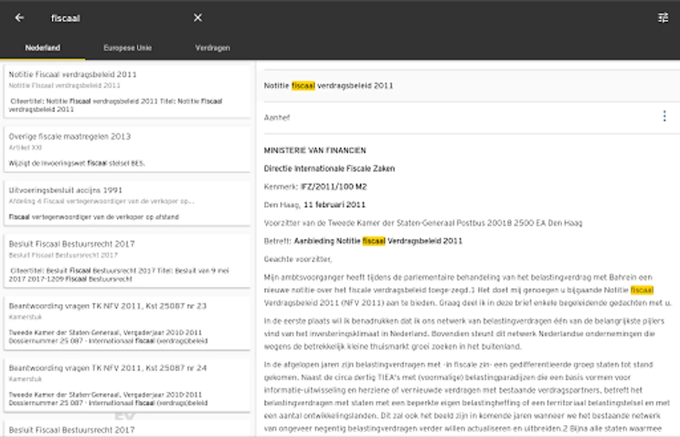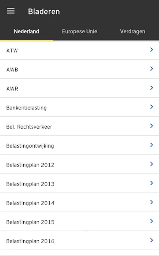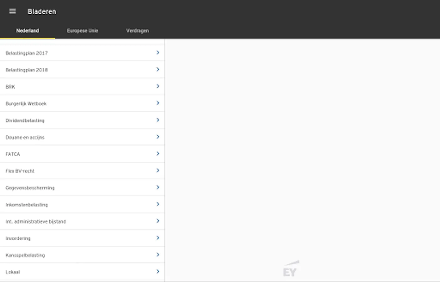 The application EY TaxLaw EN provides a handy set of current Dutch and European tax regulations, tax laws and Dutch bilateral tax treaties. The texts are divided for clarity into three sections.