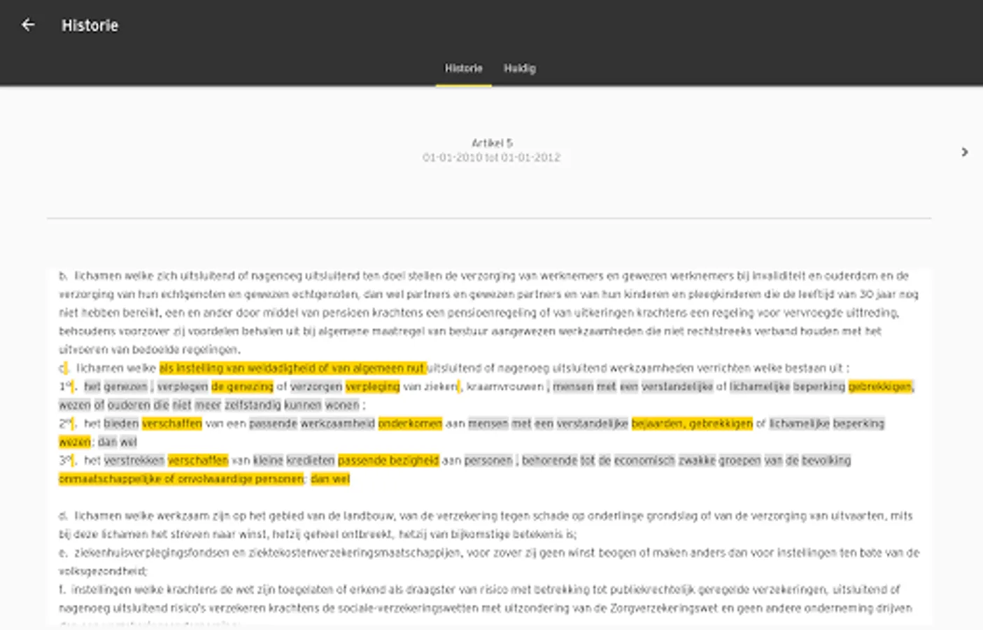 Within the sections Netherlands and Europe the texts are grouped by legal domain (Income Tax, Payroll Tax, Corporation Tax, etc.). The treaties are sorted by country / jurisdiction. So you can easily browse through the various tax components and the related texts. Moreover, the Dutch laws- and regulations and treaties provide hyperlinks to other articles and regulations.