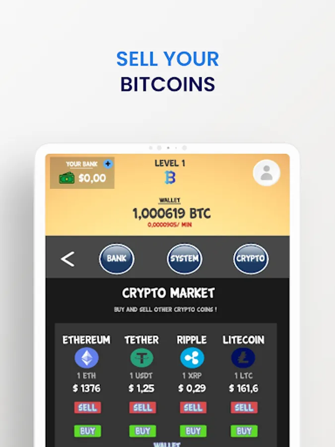 Upgrade your crypto miner skills, buy new companies and collect crypto coins.