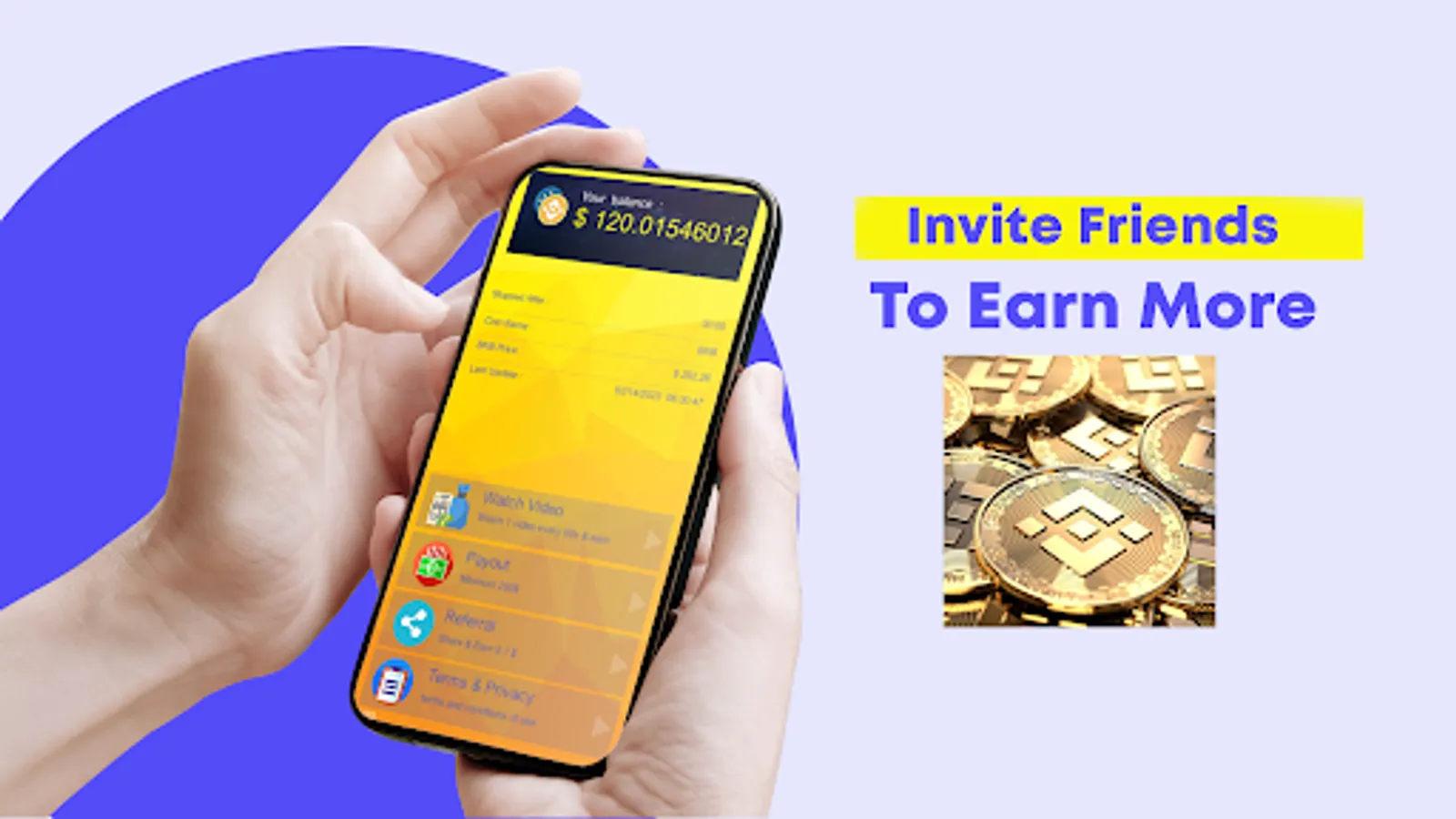 The "Earn BNB - No mining" application allows users to earn BNBs by watching ads every day.