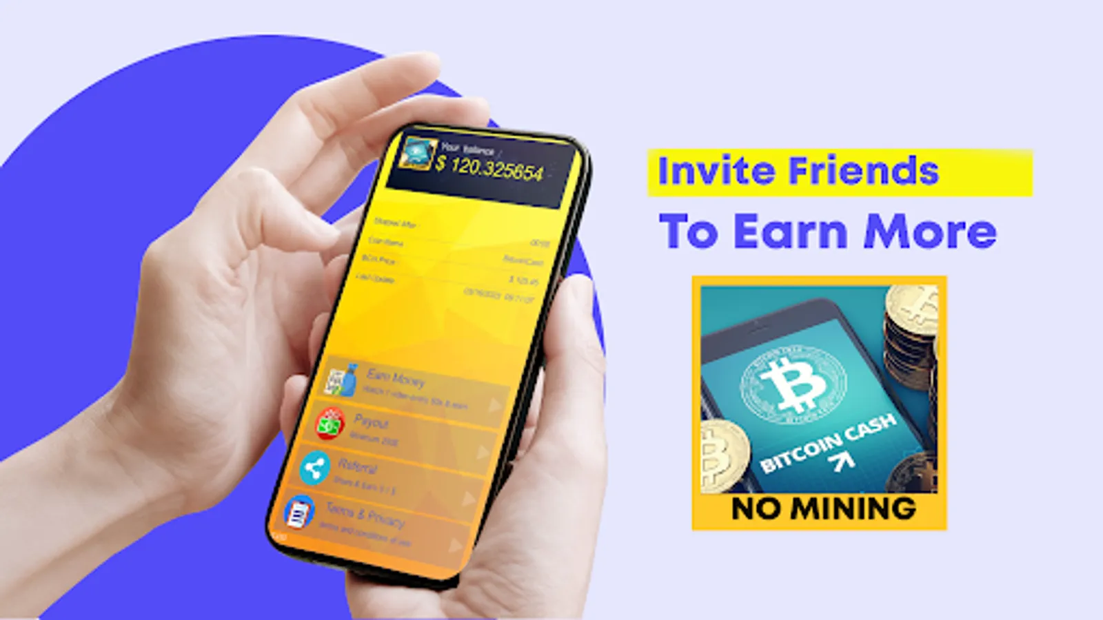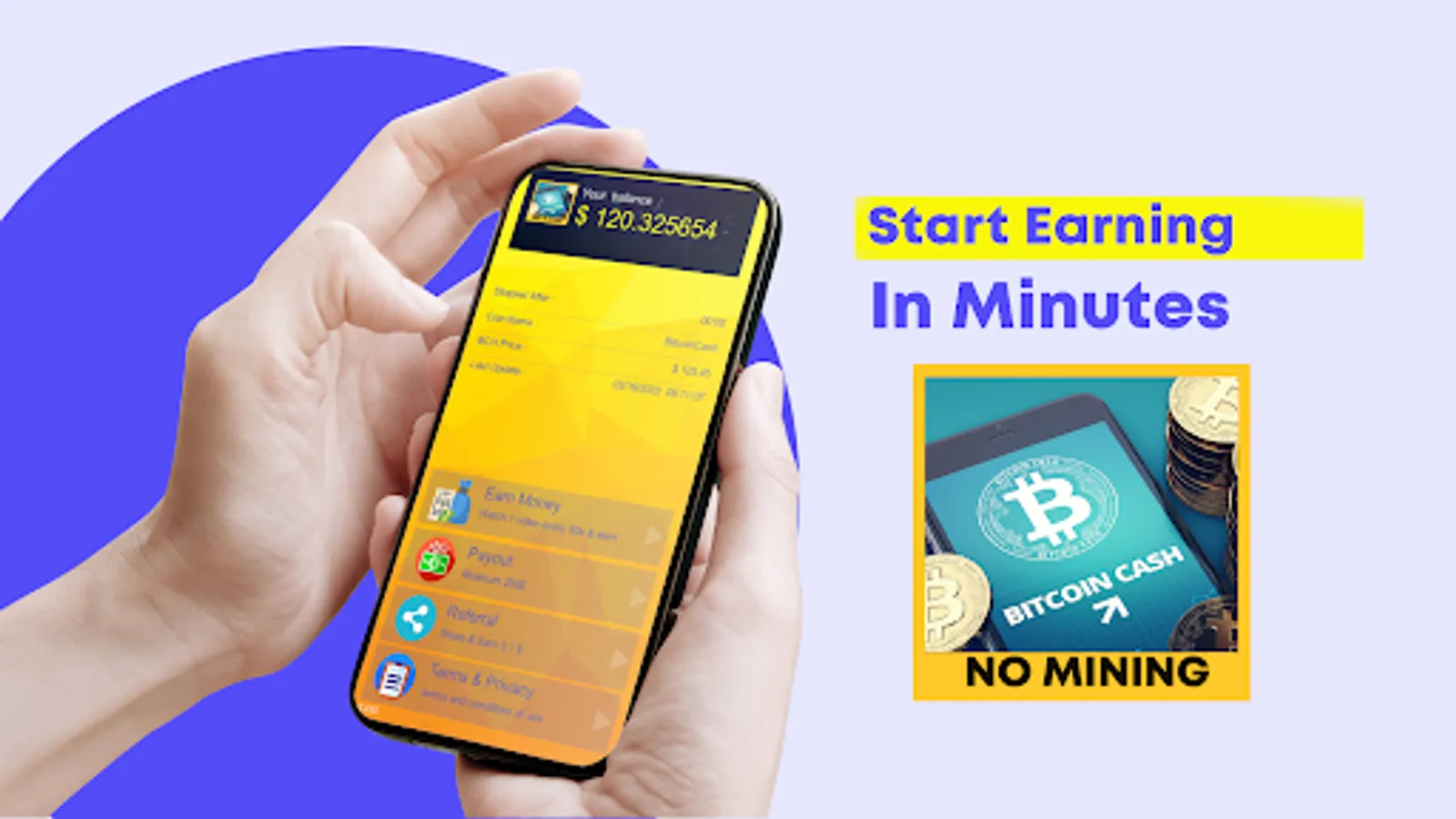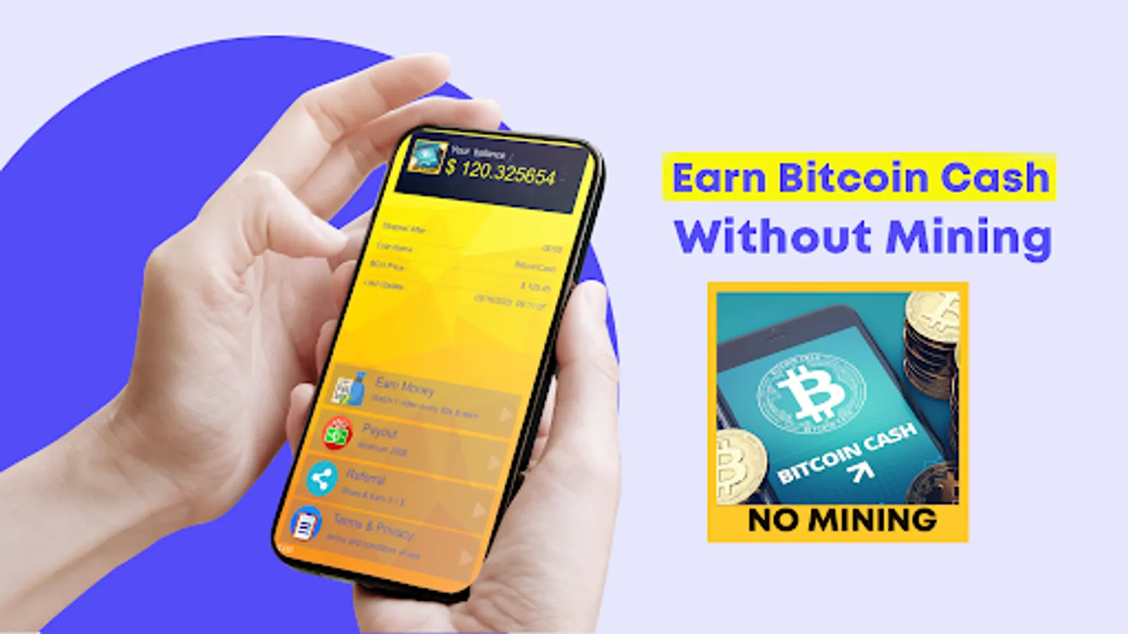 The "Earn Bitcoin Cash (BCH) - No mining" application allows users to earn Bitcoin Cashs by watching ads every day.