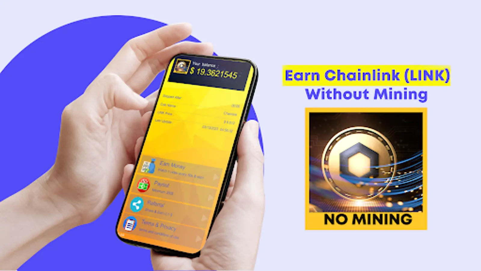 The "Earn Chainlink (LINK) - No mining" application allows users to earn Chainlinks by watching ads every day.
