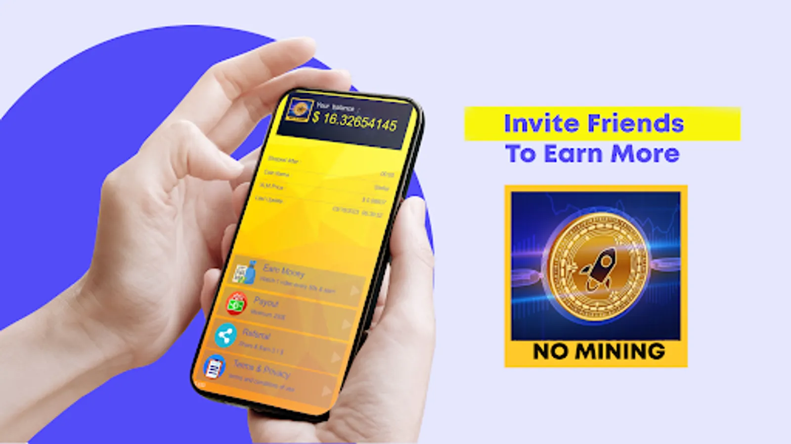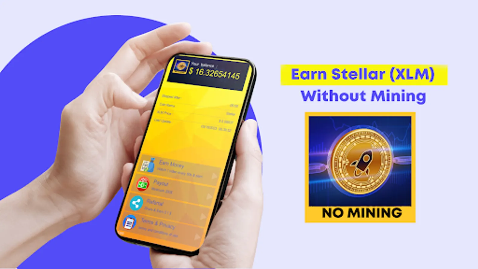 The "Earn Stellar (XLM) - No mining" application allows users to earn Stellars by watching ads every day.