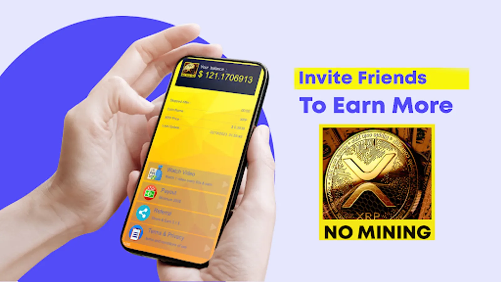 The "Earn XRP (XRP) - No mining" application allows users to earn XRPs by watching ads every day.