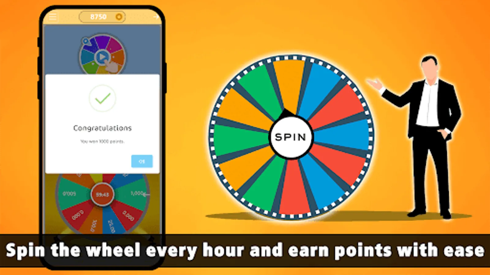 You can spin the wheel of fortune every hour to get extra points that may reach 1000 points in each spin.