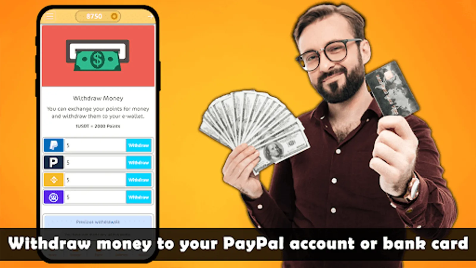 You can exchange your points that you collected within the Earn Money from your phone application with real money through the withdrawal page, and you can withdraw money directly to your electronic wallet, to your electronic card, or even to your PayPal account directly.