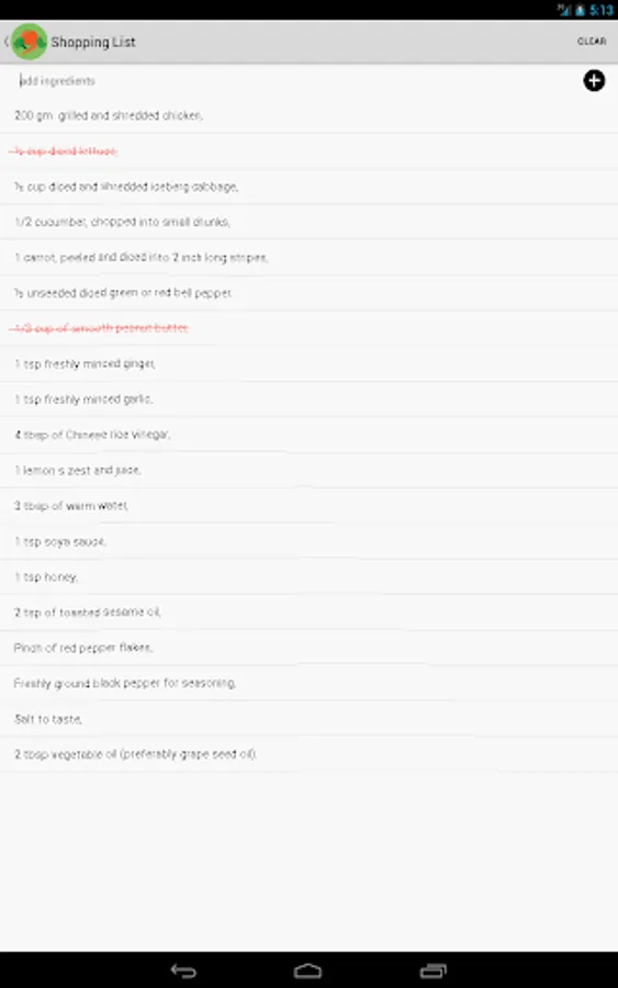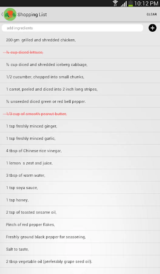 >> Create shopping list