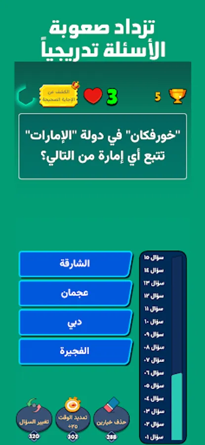 The difficulty of the questions increases the more you succeed in answering in one round.
