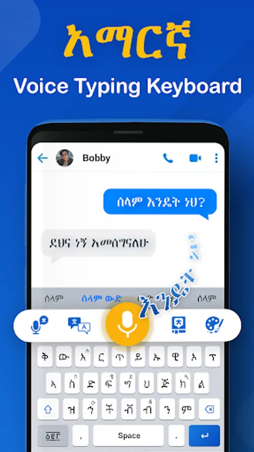 Amharic voice keyboard ⌨ is made for Amharic and English speakers, who want to learn English and Amharic language. Speak and Translate is one of the best modules of the Amharic voice typing Keyboard. Convert Speech to text with the help of the Voice translator app. Correct spelling mistakes and check the meaning of difficult English words with the help of the English Dictionary. Amharic keyboard has beautiful colorful keyboard themes for users. Learn English words with the help of a Language Translator (Traductor).