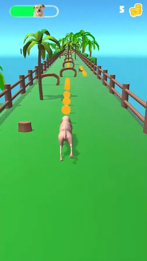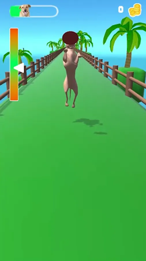 Throw the frisbee to the dog, catch it with the dog and avoid obstacles to bring it back to the owner!