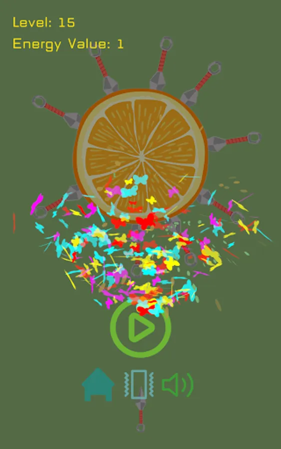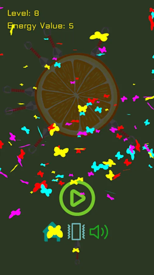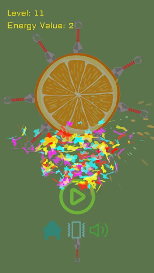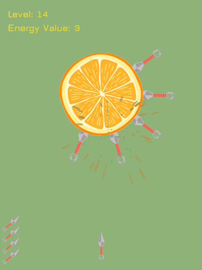 This is a game of flying knives. It is very simple, but also very attractive. When the flying knives are stuck on the fruit, juice will burst out, making you feel unprecedented pleasure. In each level, you only need to hit all the throwing knives on the fruit, and it will be successful. Note that the fruit will keep turning, even suddenly changing direction or accelerating. Each level needs to be calmly and calmly dealt with in order to successfully pass the level. Hope you can pass all the levels