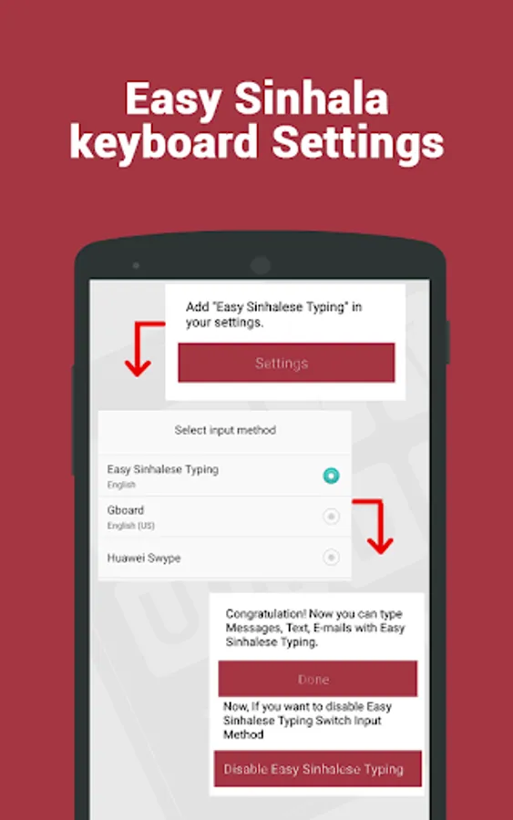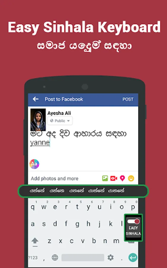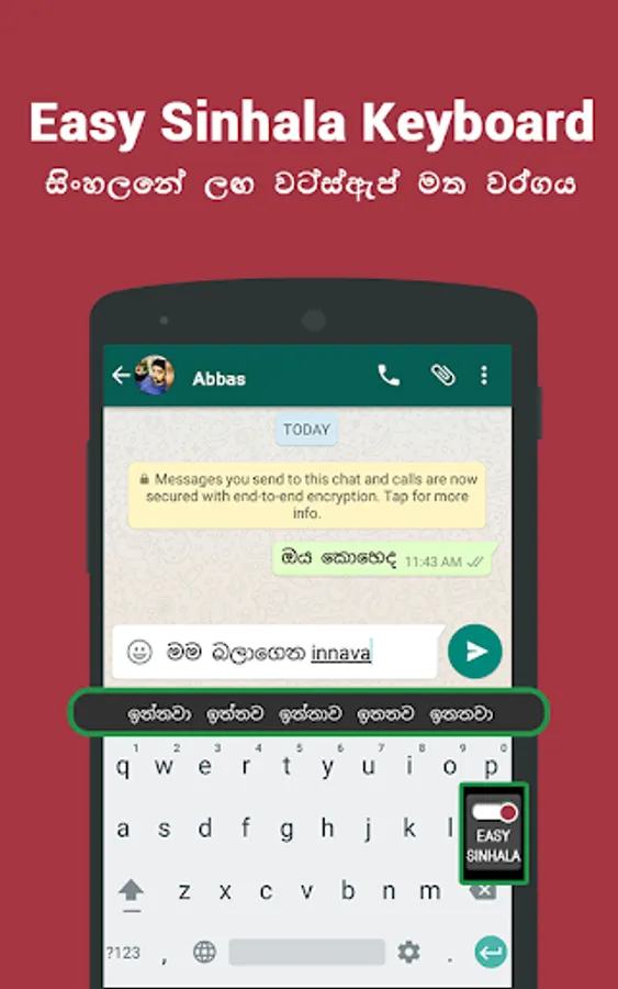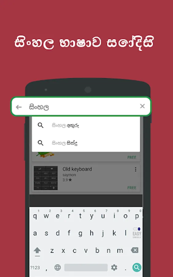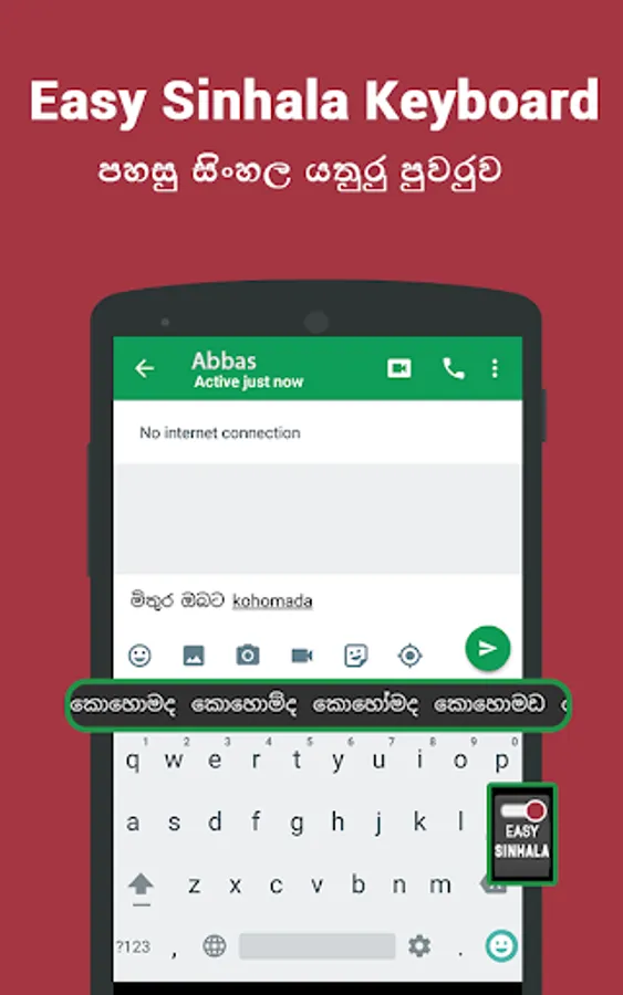 - In-build Sinhalese keyboard given within the app itself. You can directly type in Sinhala using this keyboard. You don't need to download any Sinhalese keyboard application from the play store.