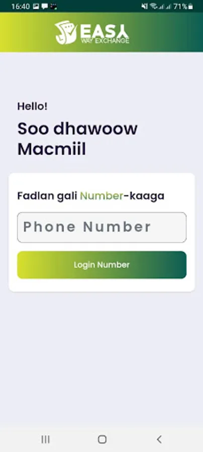 App-kaan waxaad ku sarifan kartaa kali lacaga jumlada ah.