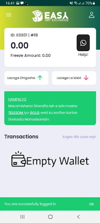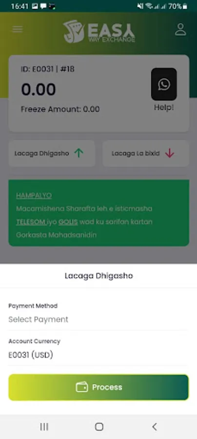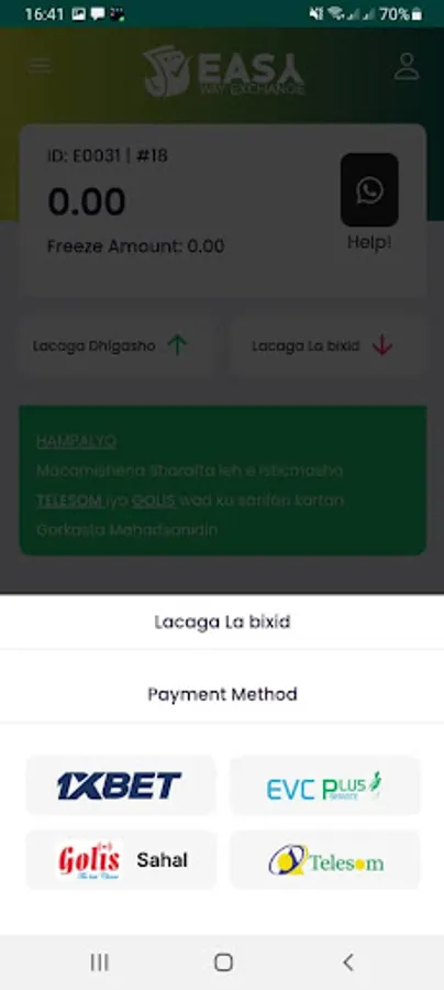 Easyway Exchange waa suuq sarifka lacaga qalaad iyo EVCPlus to Prefect Mone , 1Xbet