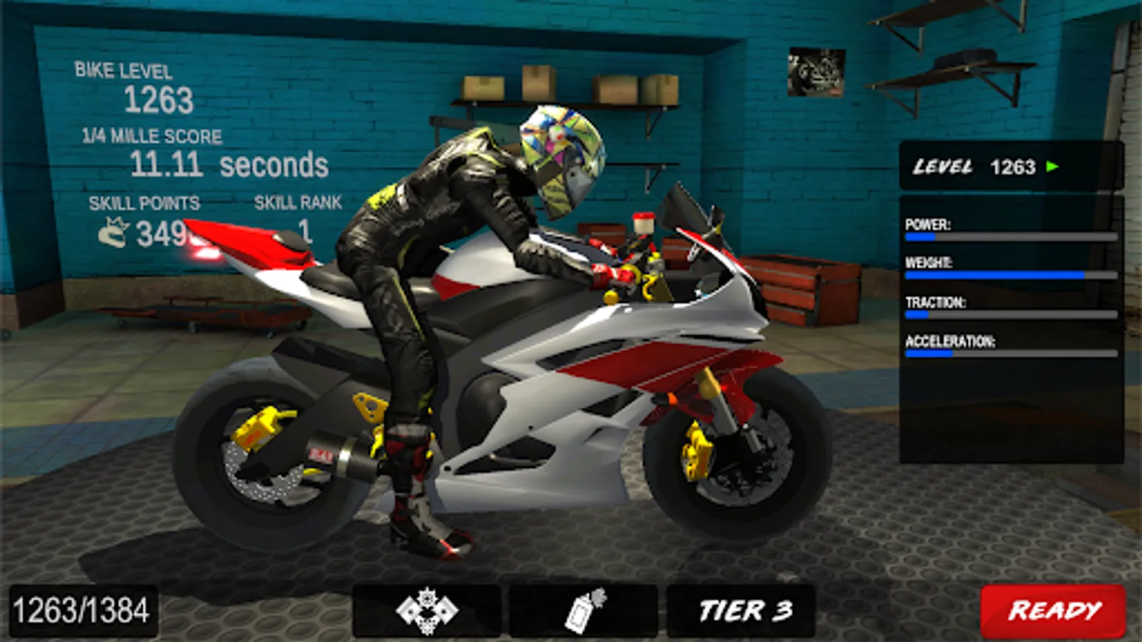 Showcase your racing prowess and proudly display your stunning collection in your expansive garage. Take control of powerful machines and Immerse yourself in the world of drag motorcycles running in the 1/4 mile on streets and feel the rush of speed like never before!