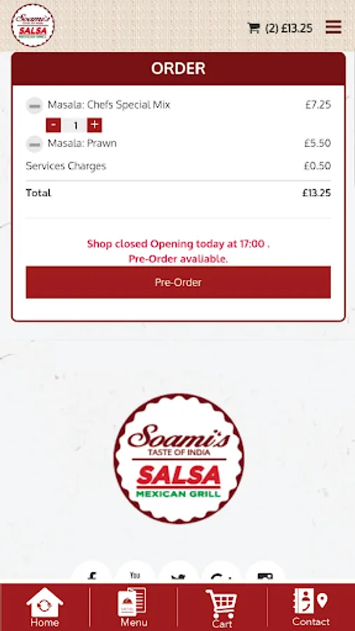 Once downloaded it will enable you to order food from our extensive Soamis Salsa menu.