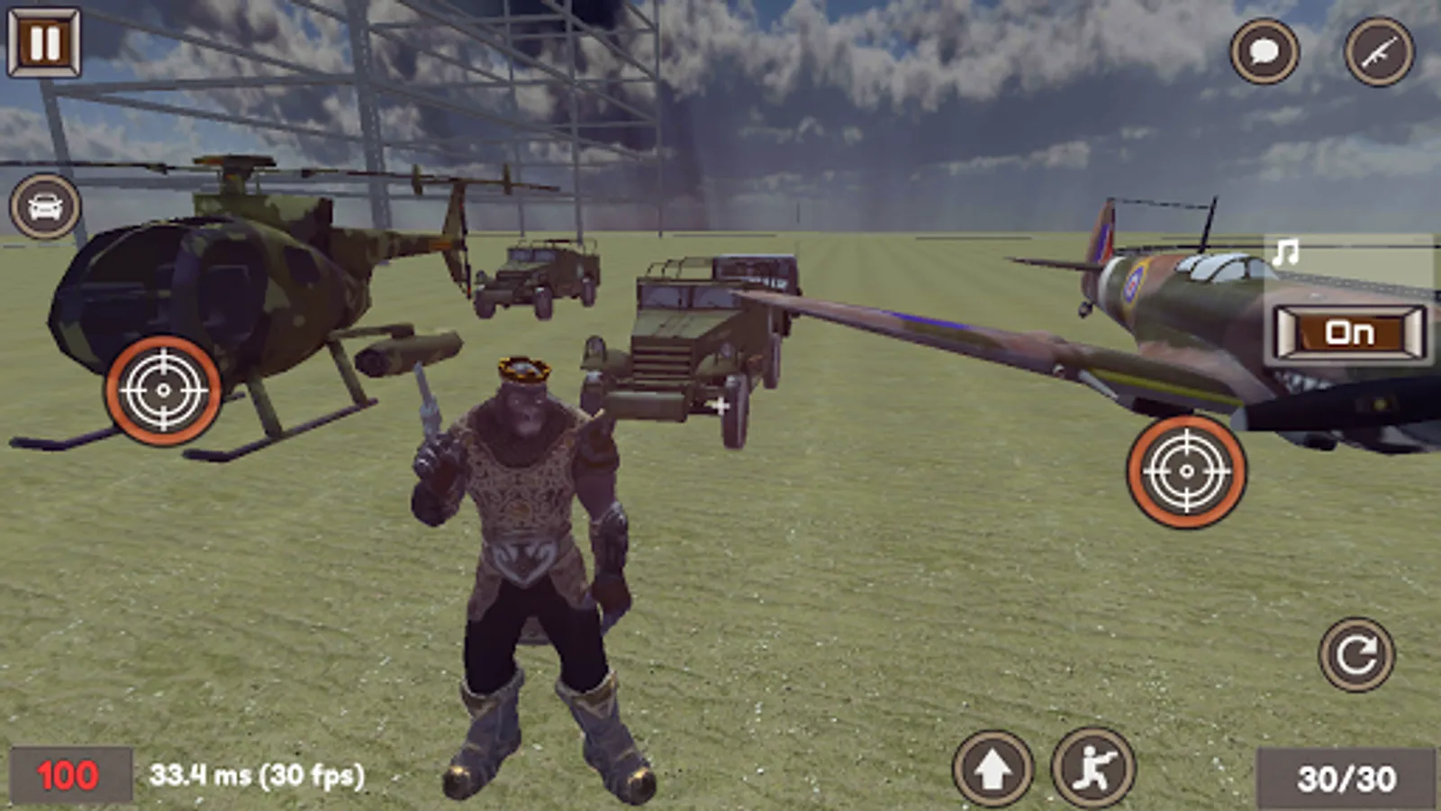 Your character is an evil primate. You are provided with a variety of weapons: a pistol, a shotgun, an assault rifle, a shortened assault rifle, a bazooka, a sniper rifle, a machine gun and a grenade launcher - a good choice for shooting enemies :) There are also vehicles: cars, a helicopter and airplanes for quickly moving around the map.