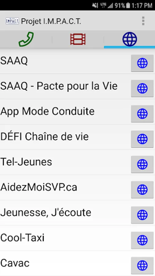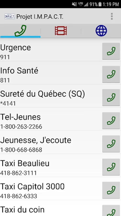 - Launch of calls to emergency numbers (eg 911, 811, Tel-Jeunes, taxis, etc.)