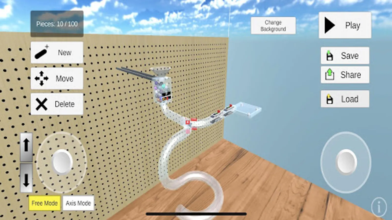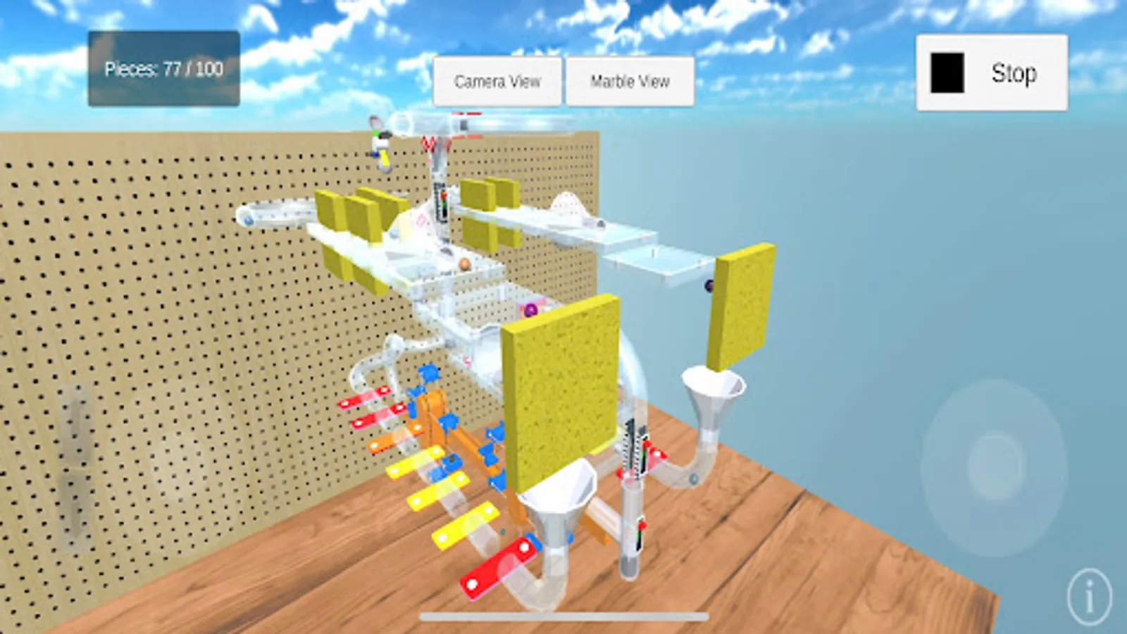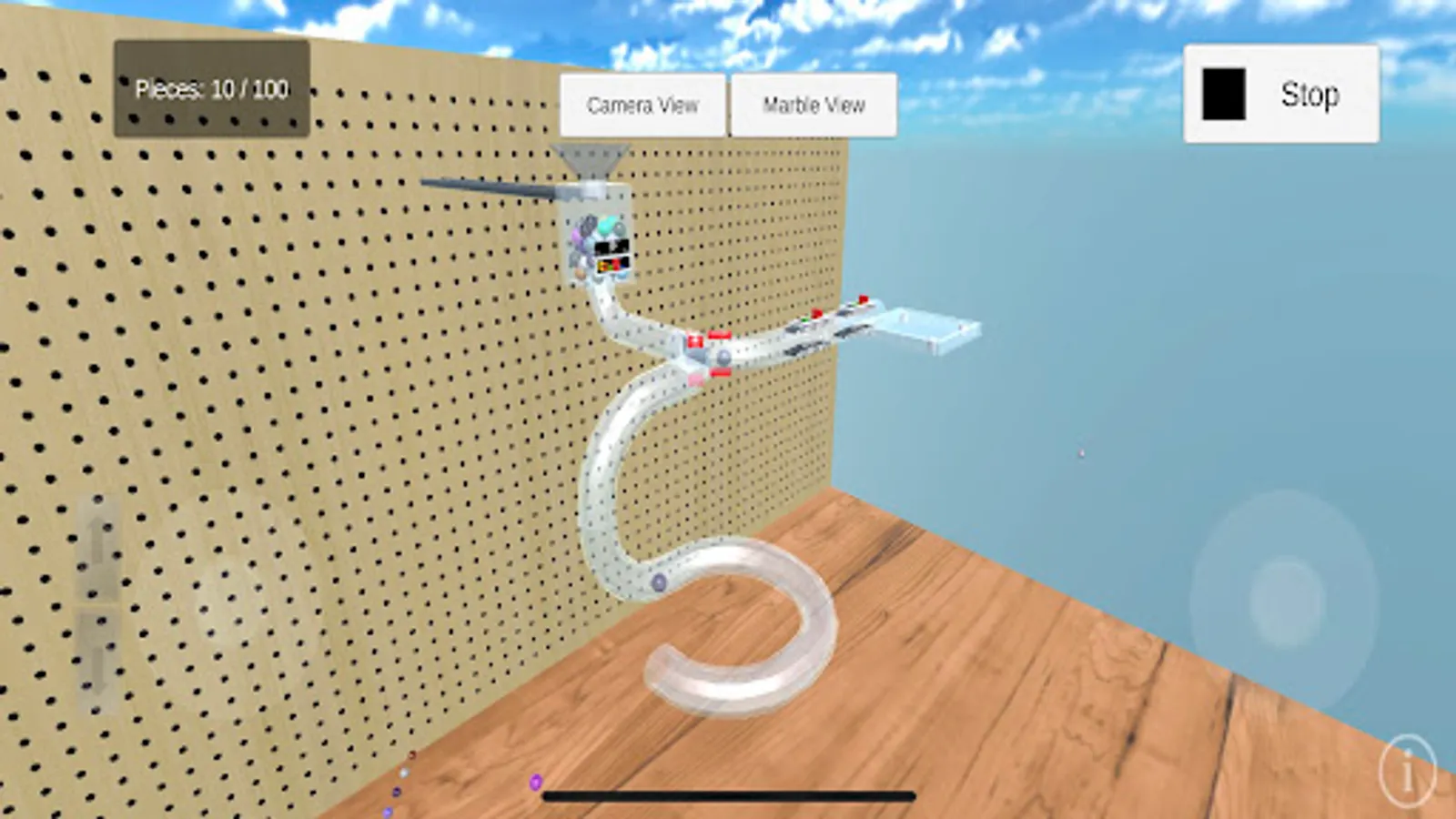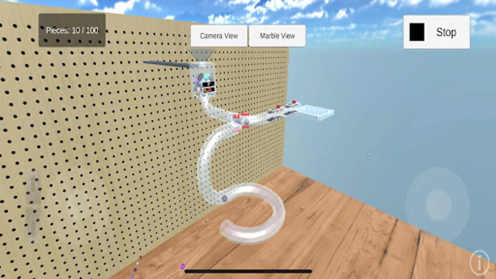 Hit Play to watch your creation run. Choose from 4 different preset camera positions, or use the controls to create your own custom view. An additional Marble View will show you what it’s like to travel inside your device.