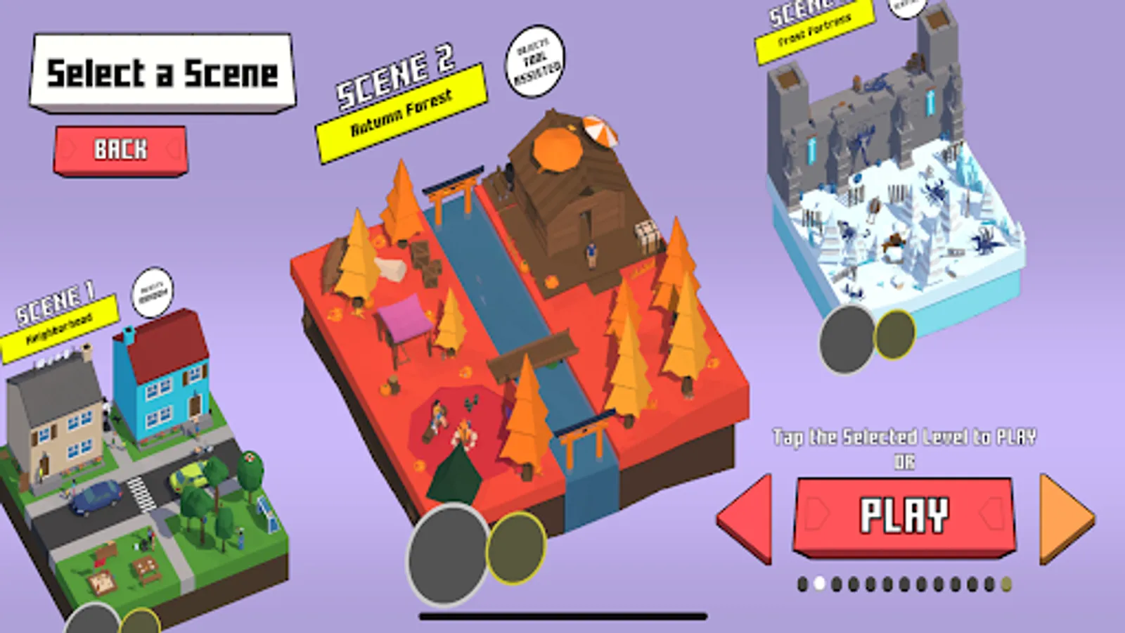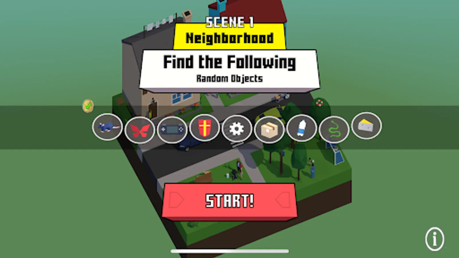 Collect all of the hidden objects in each of 12 scenes. Scenes can be completed in any order. Each time you start a level it selects random assortment of items to find,.