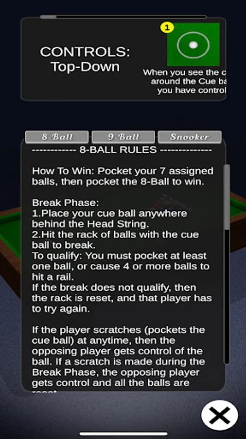 - Snooker (alternate between red and colored balls, with automatic scoring)