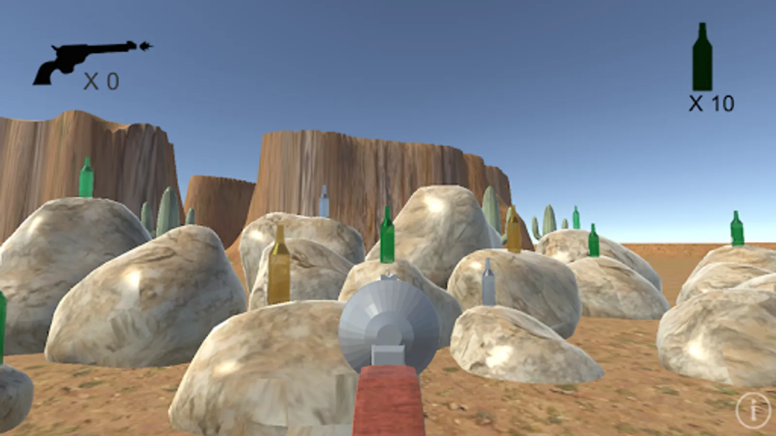 Turn and tilt your device to line it up your gun with the target. Then tap the screen to fire. Seven challenging levels with stationary and moving targets, single and double skeet shooting, and western style duels against three bad guys.