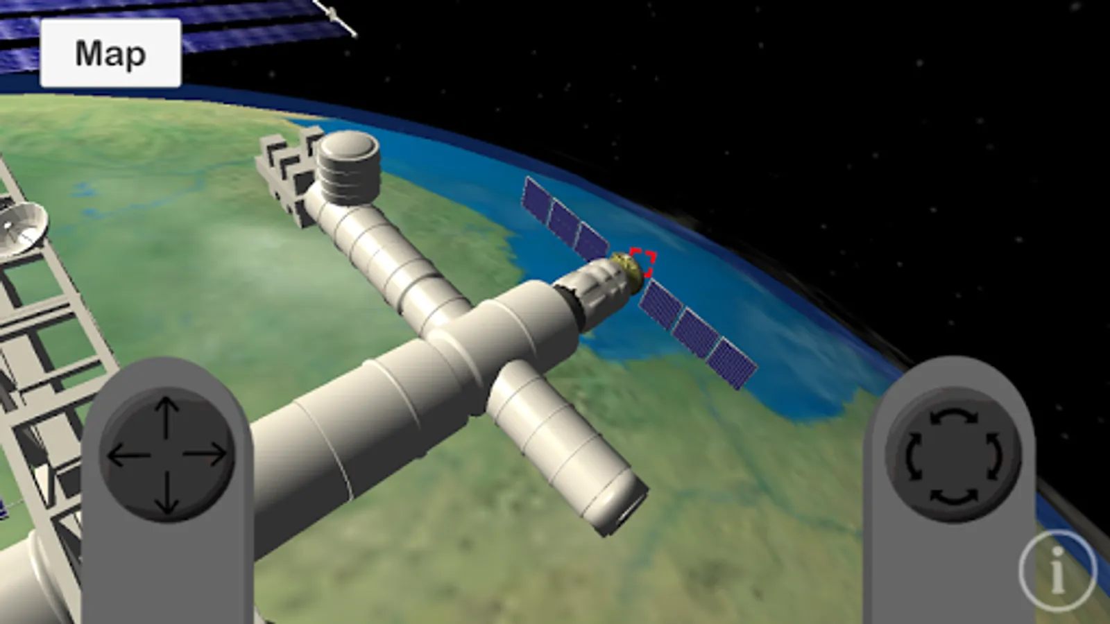 Use the dual joystick interface to modify the orientation of the vehicle with one control, while using the other to carefully move closer to the space station dock.