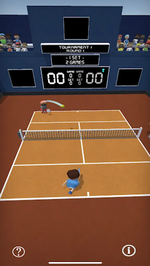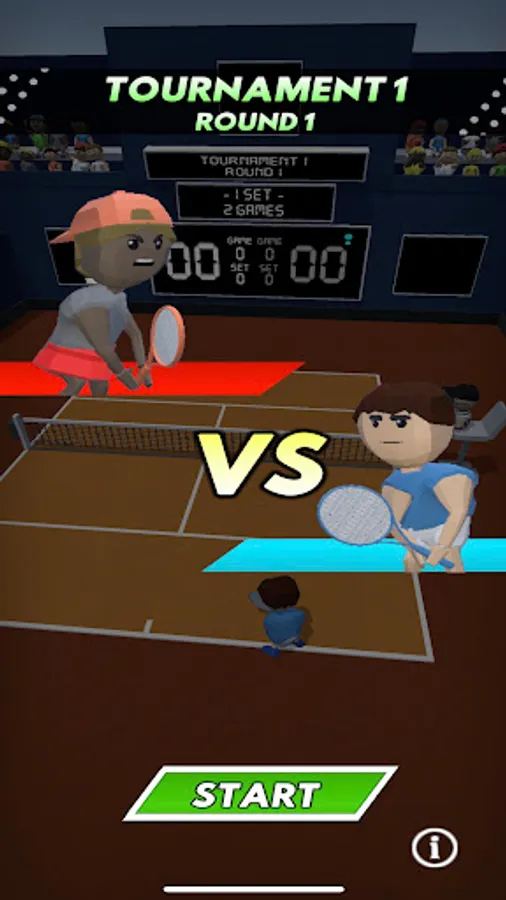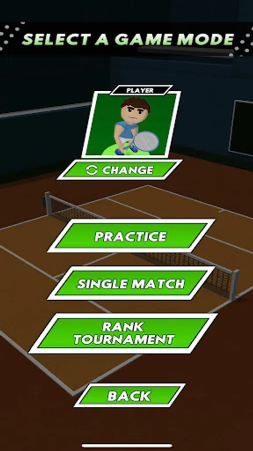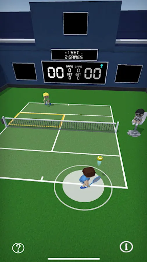 Choice of court surface (hard, clay, and grass). Three AI difficulty levels. Can chose number of sets and games.