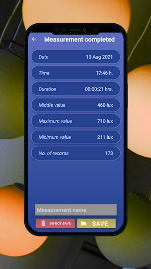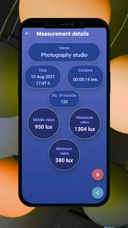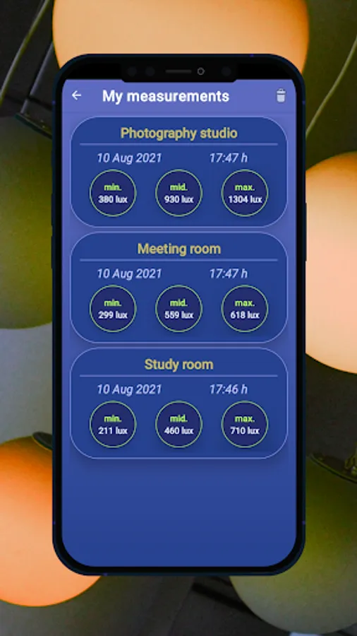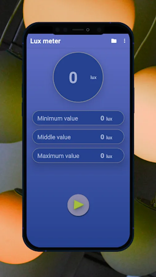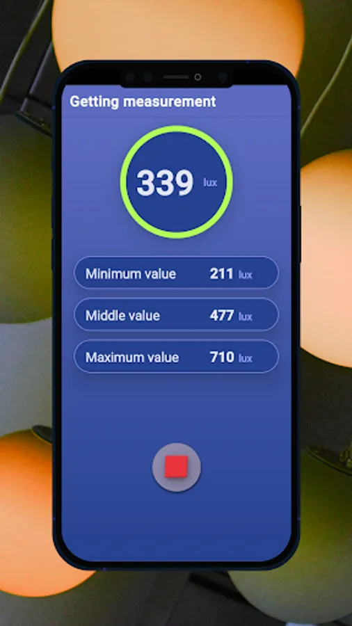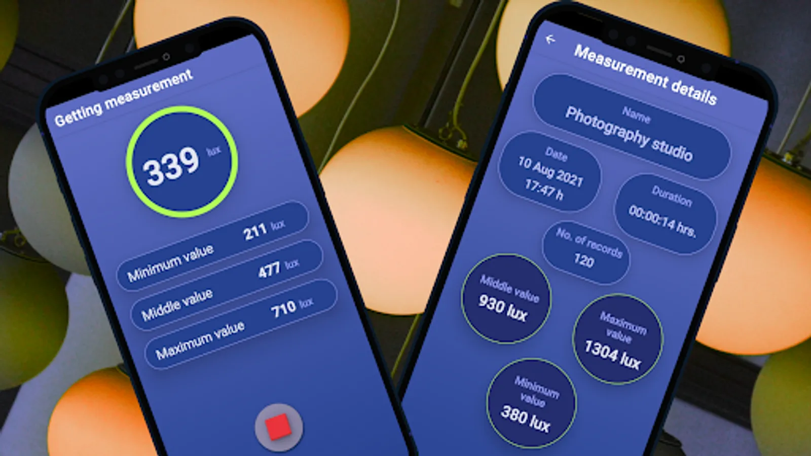 Application to carry out measurements of ambient luminosity. The unit of measurement of light is given in lux (measurement equivalent to lumens per square meter - 1 lux = 1 lumen m²).