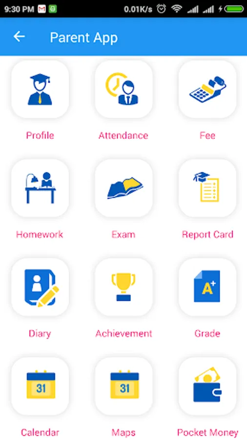 Attendance, Exams, Fee, Home works, Lesson planning, Notifications, Online Feedback etc. are the key features that parents can avail through the app