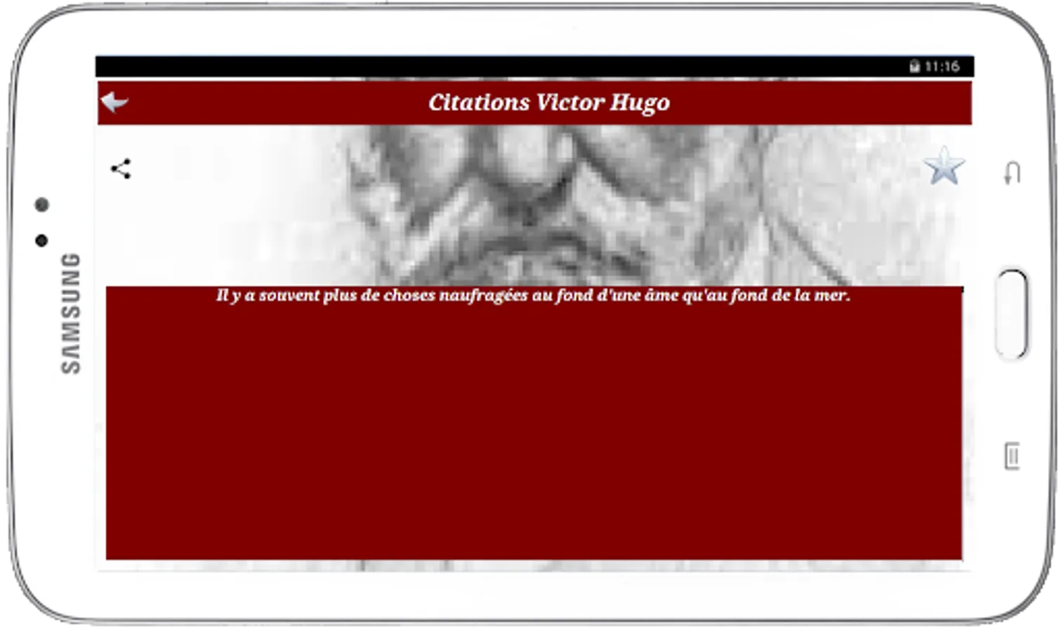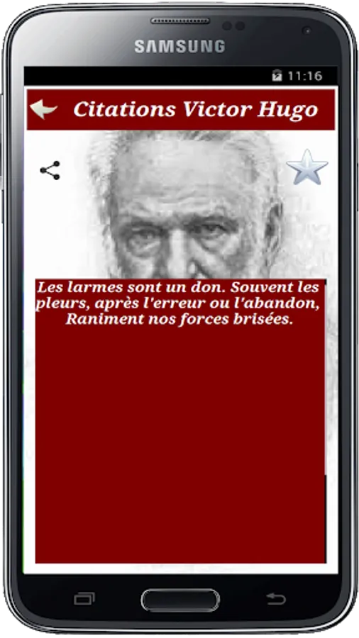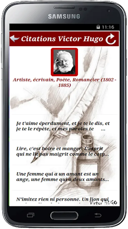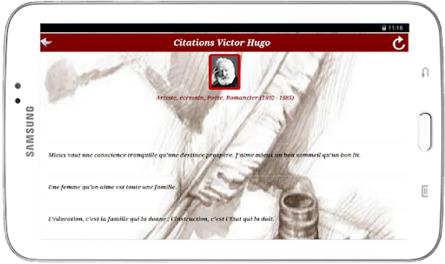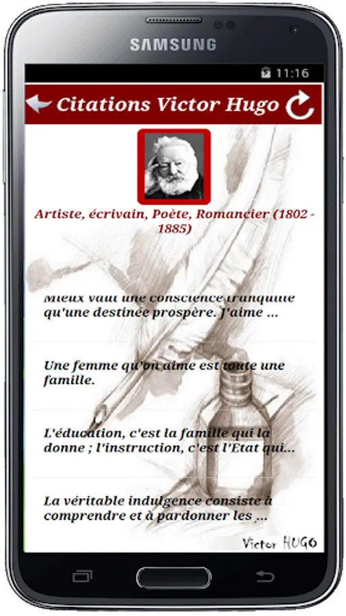 This application will allow you to discover many quotes from Victor Hugo. In addition to that, it is possible to share the quotes with the mates.