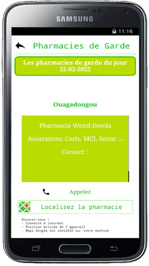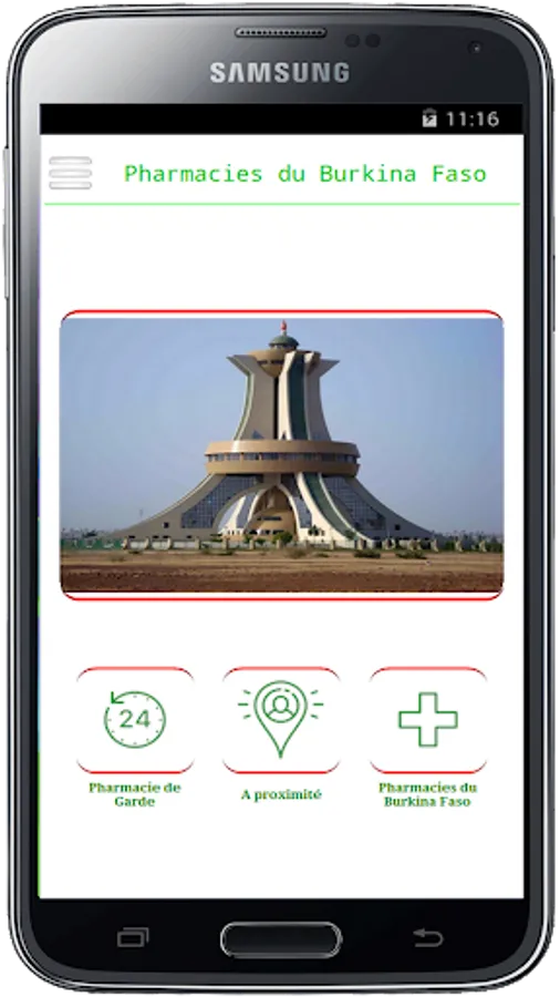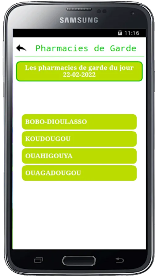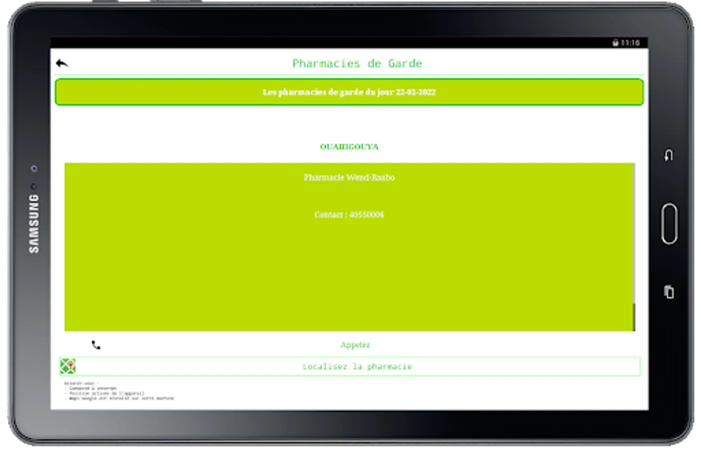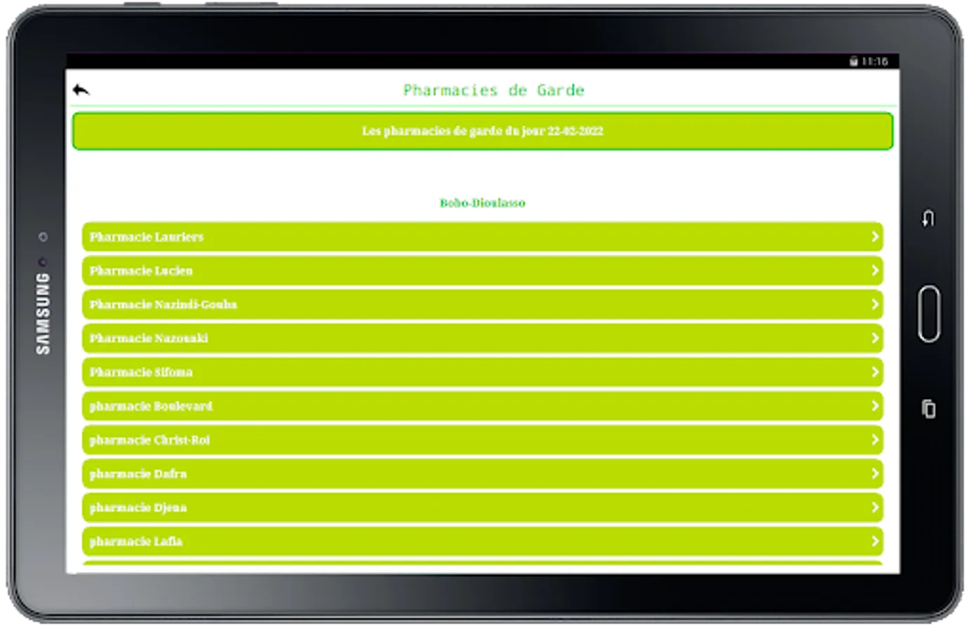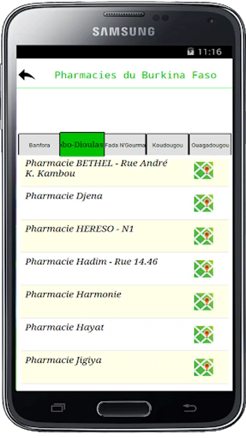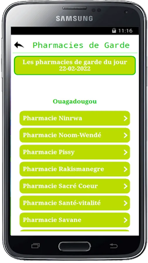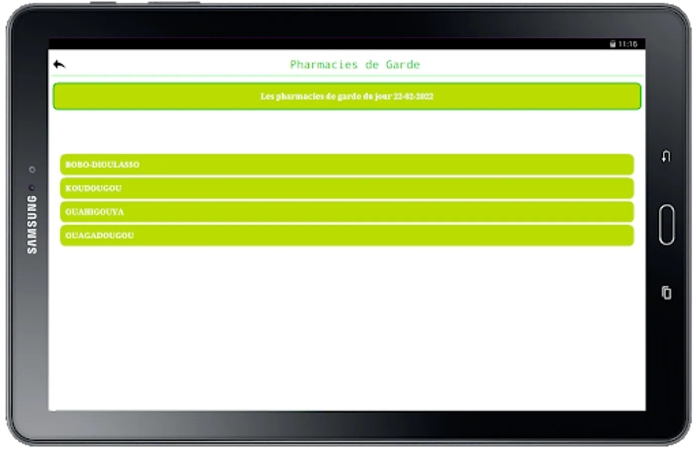 The application Pharmacies on duty in Burkina Faso is an application that allows you to have all the pharmacies and pharmacies of Burkina Faso, to consult in real time all the pharmacies on duty in cities such as Ouagadougou, Bobo-Dioulasso, Koudougou, Ouahigouya.