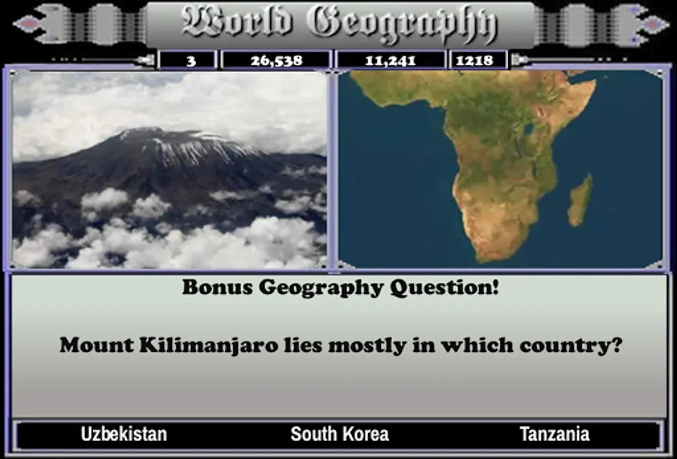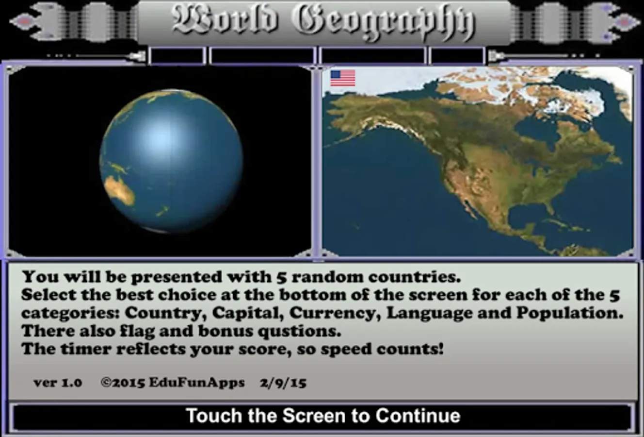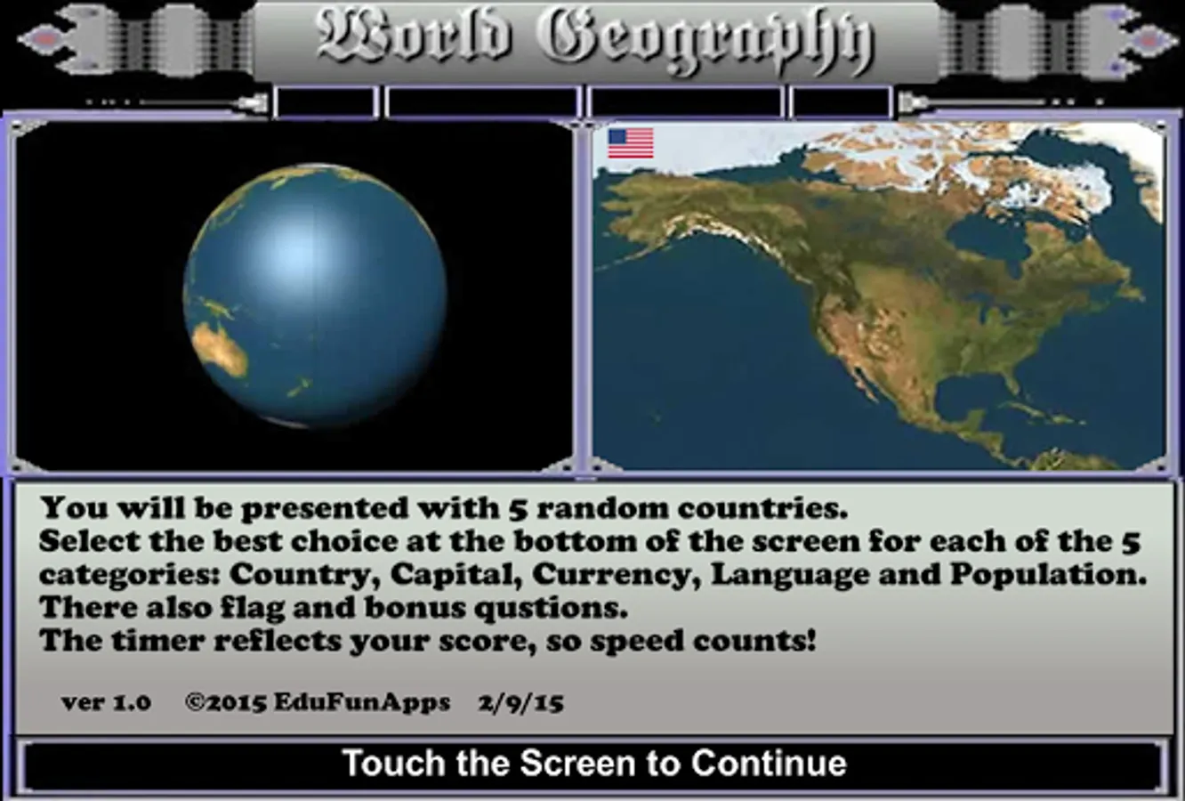 Score points for answering basic questions, and keep an eye out for bonus flag questions and general geography questions as well. Use your touchscreen to punch in the answers as you go--the faster you make your selection, the higher the score.