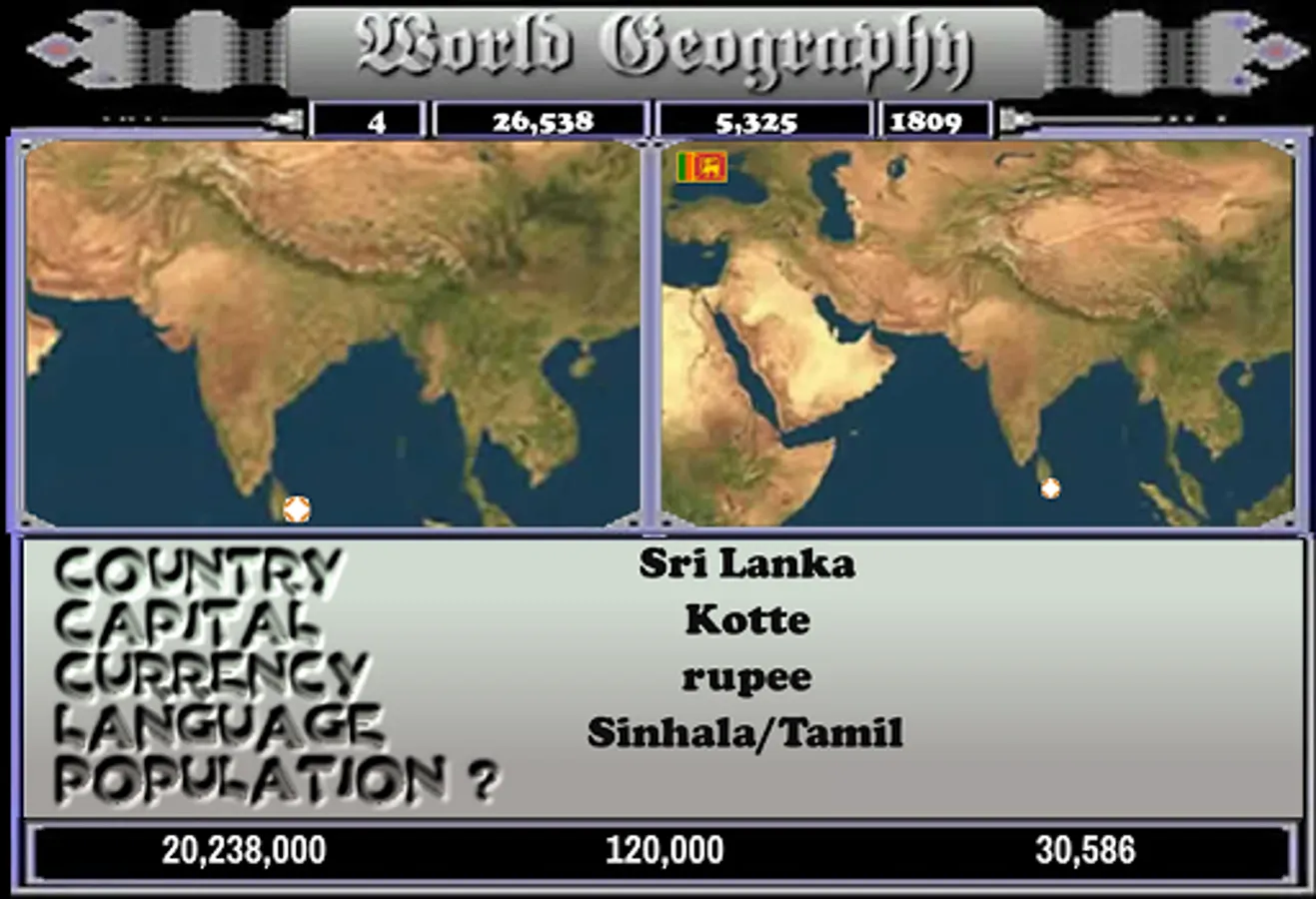 You are presented with 5 random countries and then quizzed in multiple choice format for country, capital, currency, language, and population. Watch as the globe rotates until it finds a region to quiz you, zooming in and out across the different areas highlighted for each question.