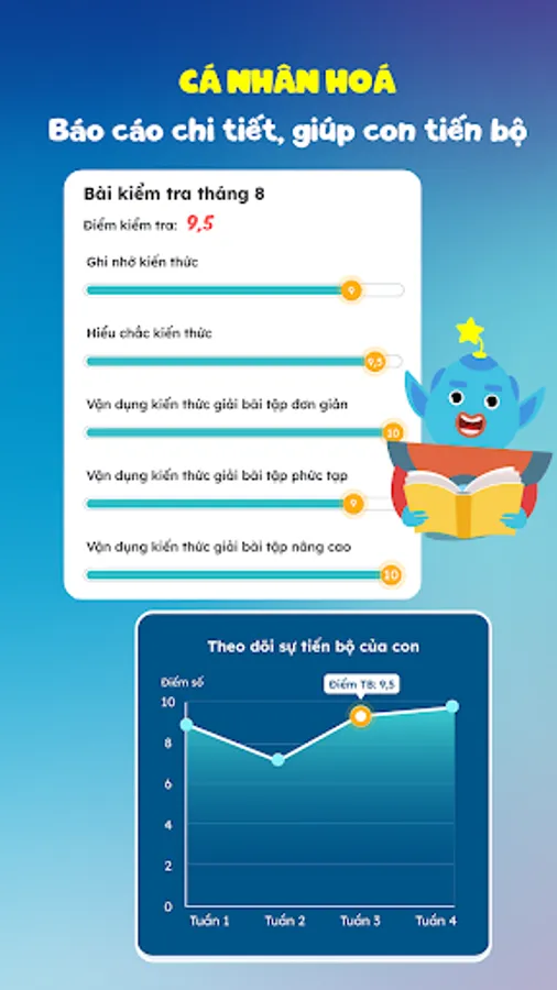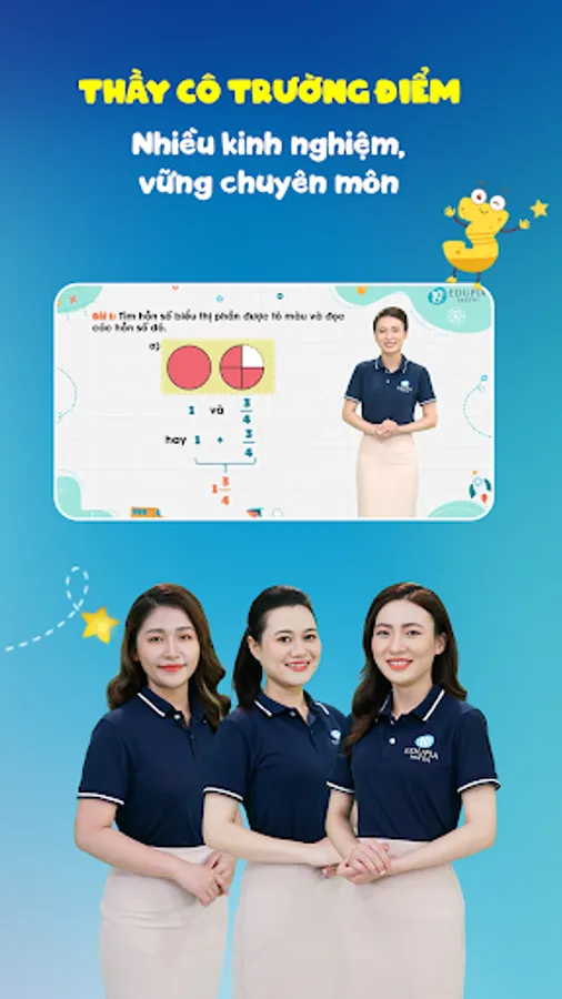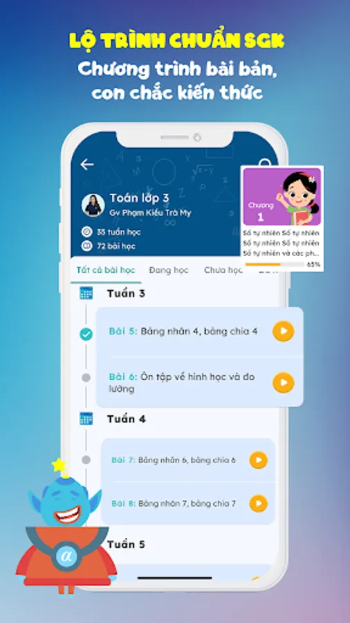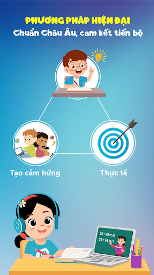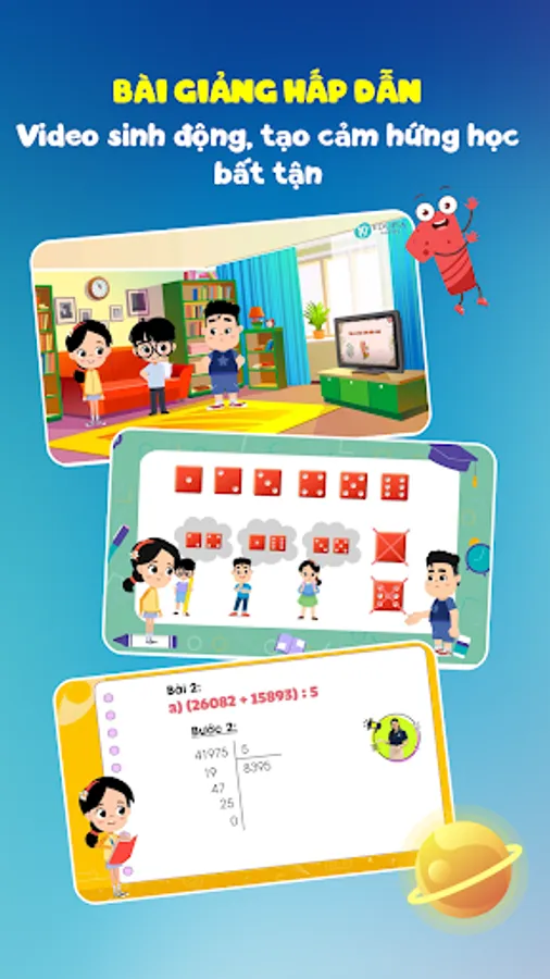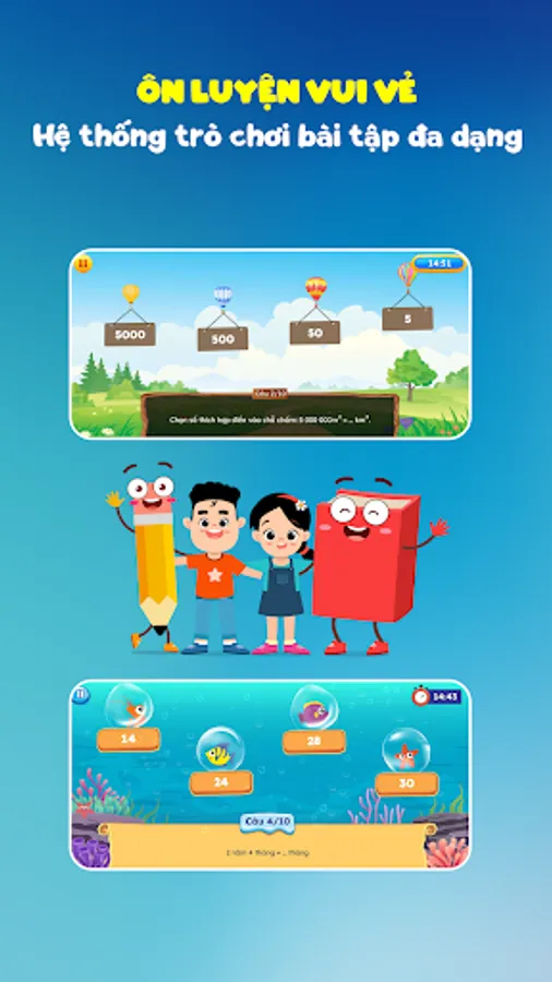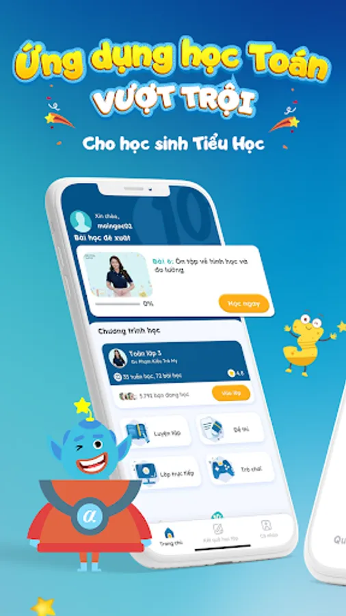 Liveclass classes with specialized school teachers are held weekly, students will review their knowledge, play math games, practice tests, grade and correct exercises.