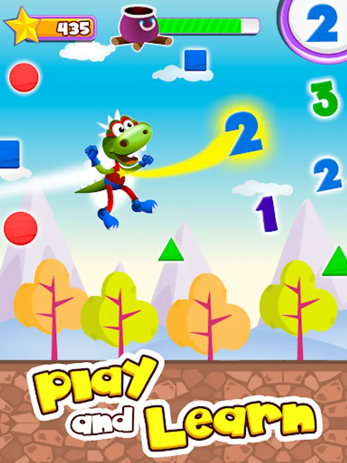 Basic skills, basic math, shapes, colors, counting games, numbers… With “Dino Tim” kids in preschool age (3, 4, 5 and 6 years old), primary school and kindergarten will learn with no effort while having fun.