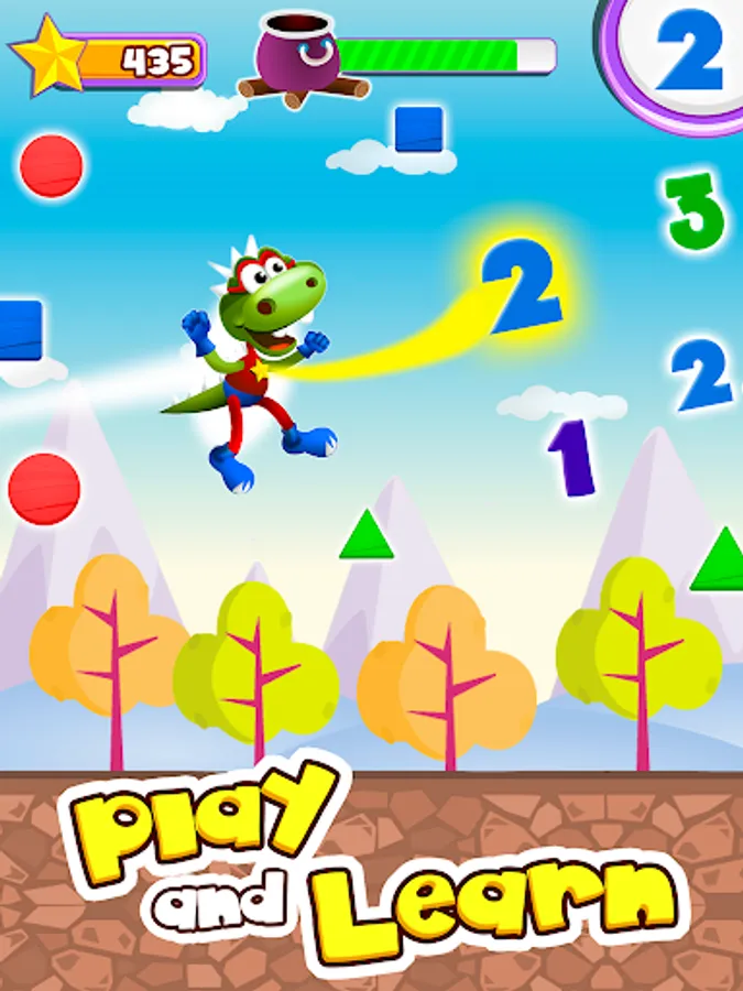 Children will experience an exciting adventure, solving puzzle games with colors and geometric shapes, running, counting, flying, learning, jumping and doing magic to unblock all the dino-characters and all game modes.