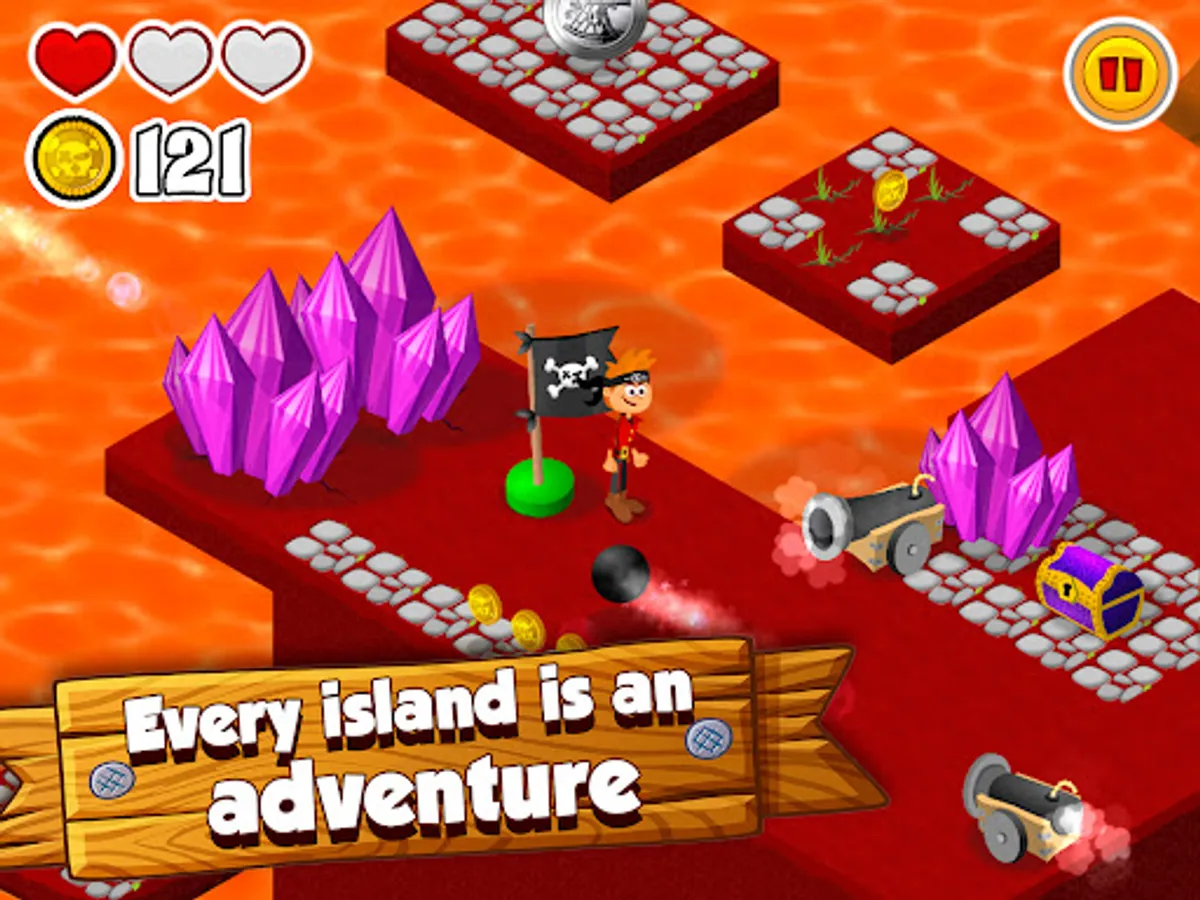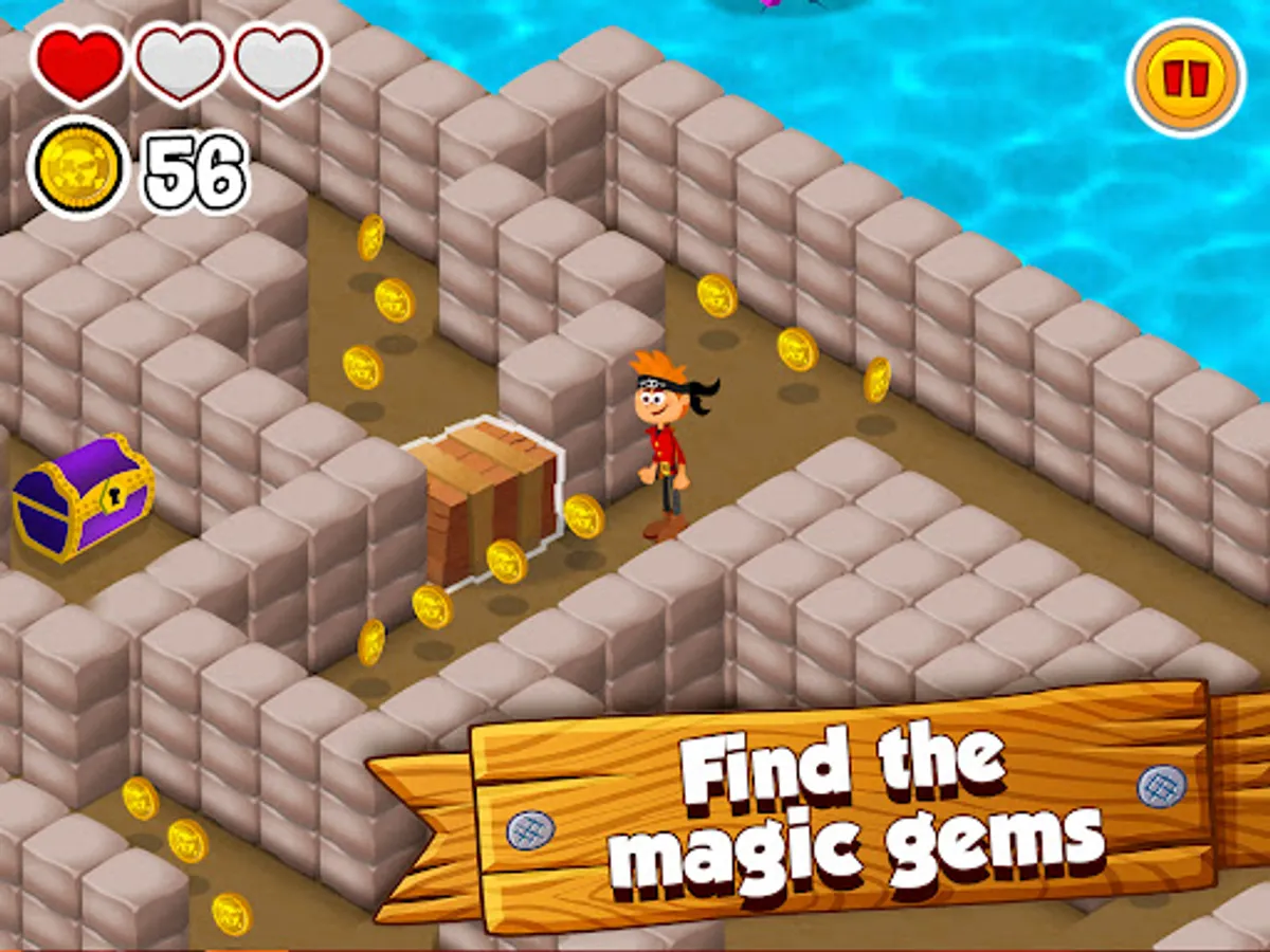Have fun with over 25 levels and negotiate all kinds of obstacles in order to get to the chest that holds the gem. It will be a real adventure—you'll have to deal with quicksand, bewitched parrots, volcanoes with lava, puzzle games, magic doors, funny carnivorous plants, etc. It will surprise you!