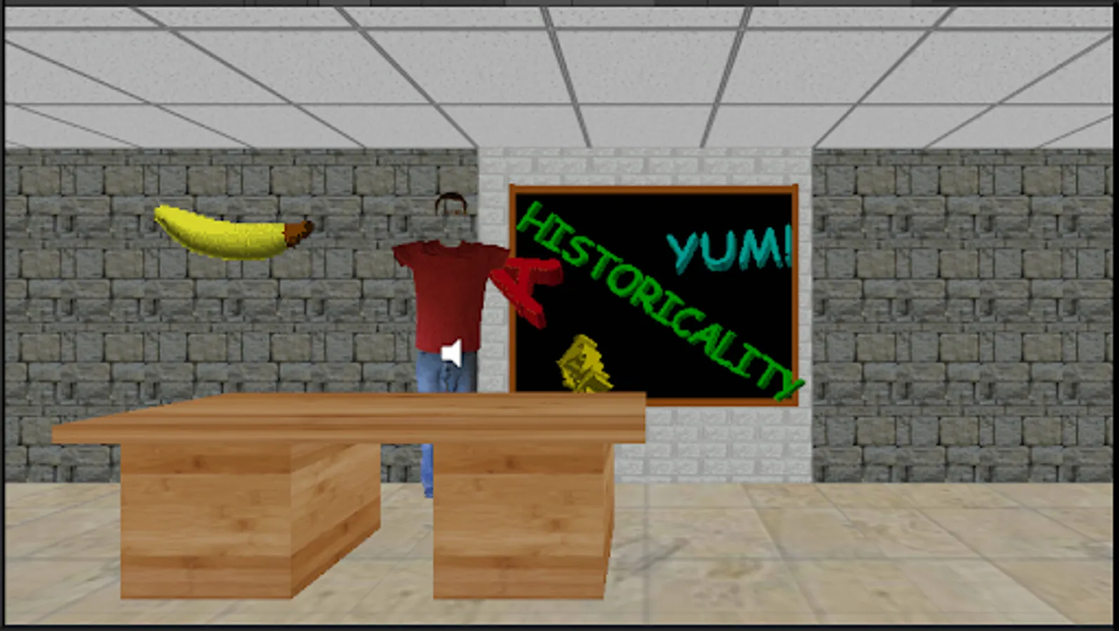 You have gone to Baldi's Bakery to help him make a cake for the birthday party! But, when you got there, baldi lost all the baking ingredients! Now you have to go around his bakery and find the missing ingredients so he can finally make the cake with you at his house.