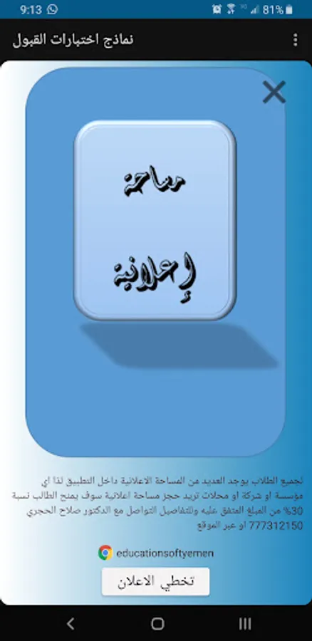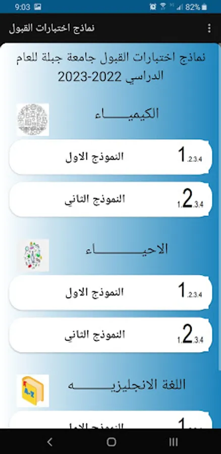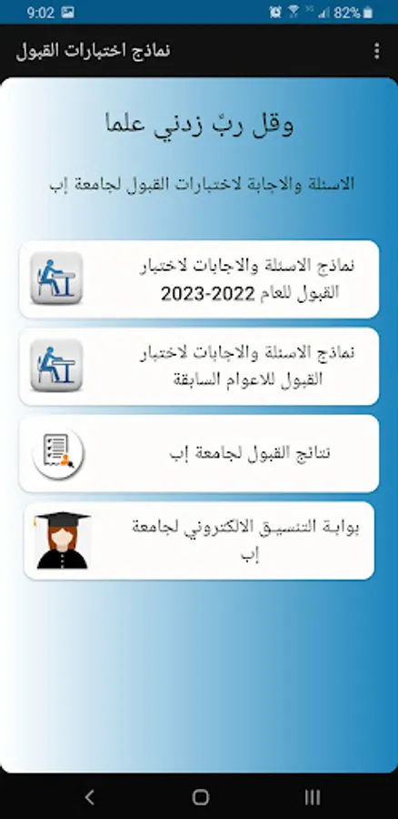 A free application that displays more than 300 forms of questions and answers for admission tests for Ibb University and Jiblah University for the year 2023 and previous years