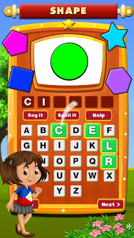 'Spell It' will spell the word, kids listen to it and learn how to spell it. The best way to memorize the spelling is by listening to it