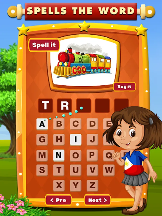 Spelling Learning is a new educational game in which you will improve your English spelling skills in an interactive and challenging way! The perfect game for kids to learn to spell, while having fun!