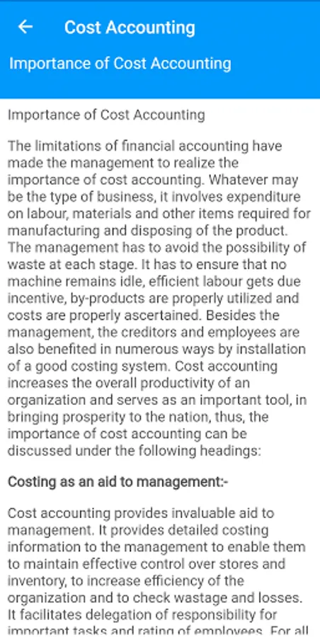 You can easily Learn Cost Accounting by using this app. Basic Cost Accounting is very easy to learn if you interested in Cost Accounting. This app has basic Cost Accounting notes & tutorial.